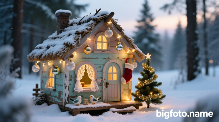 Домик в стиле шебби шик — значит вдохнуть в него тихую, почти сказочную нежность, словно снег лег на старинные доски и превратил их в полотно из меланхоличного уюта. Здесь нет резких линий и кричащих цветов — только приглушенные тона бежевого, мятного, бледно-розового, словно оттенки старых тканей, что когда-то украшали бабушкин дом. Беленые деревянные поверхности, слегка потертые временем, становятся идеальным фоном для хрупких украшений — кружевных салфеток, вышитых игрушек, лент из натурального шелка, спадающих с веток ели так, будто их прикоснулась зимняя ветерина.