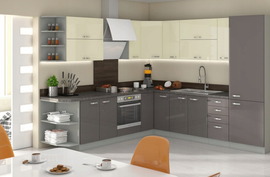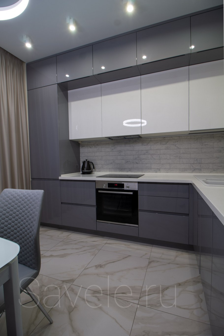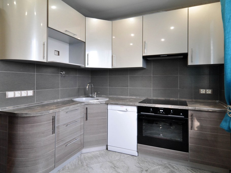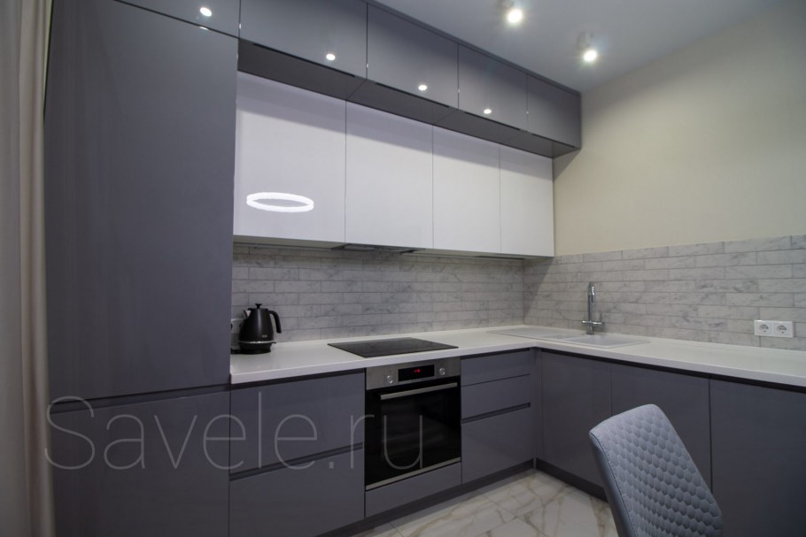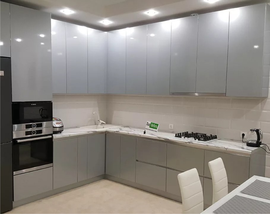 Серая глянцевая кухня