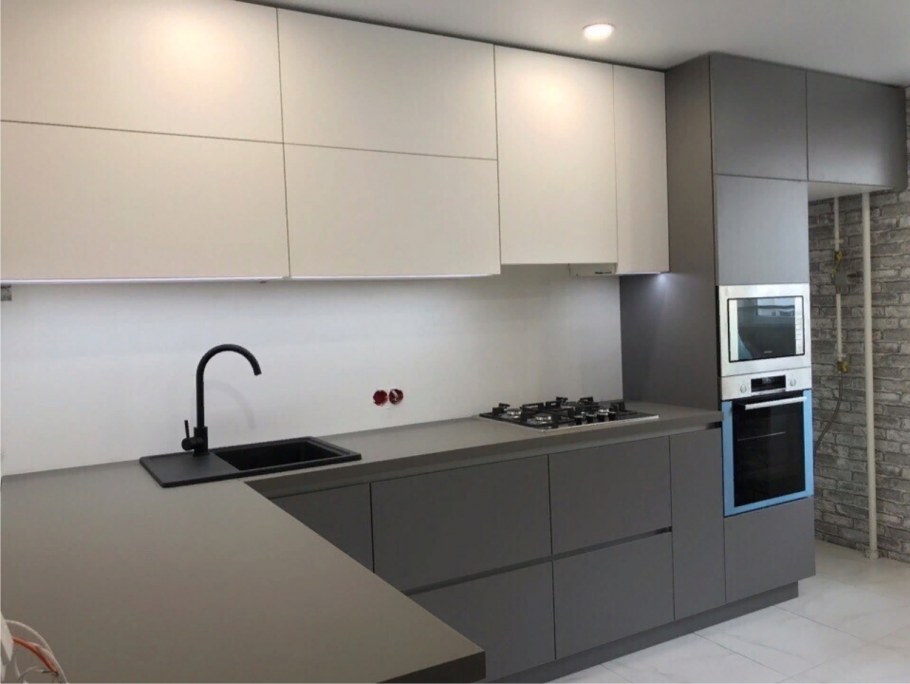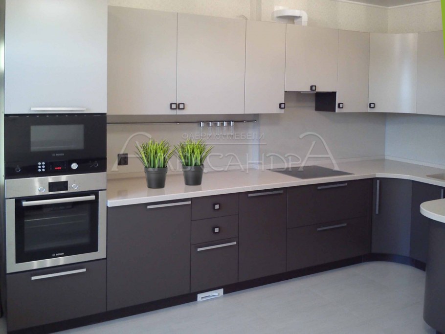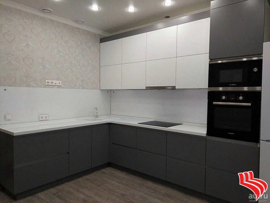 Угловая кухня серо белая матовая