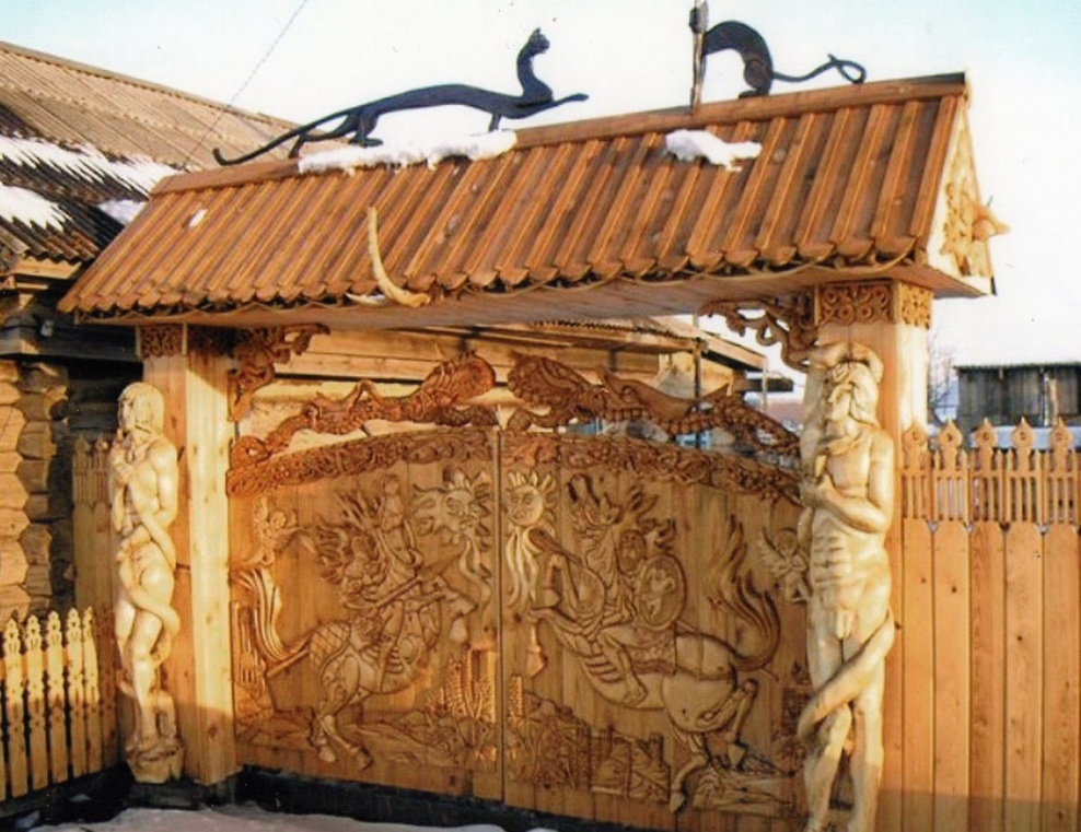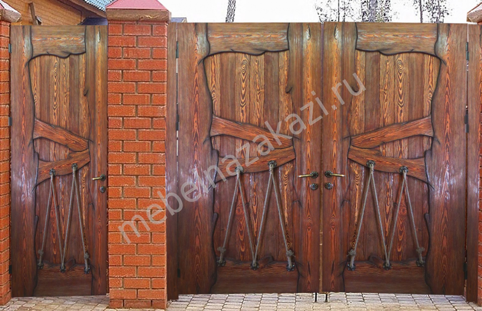 Штакетник Barrera grande h-156 128 двусторонний Printech дерево золотое Мербау