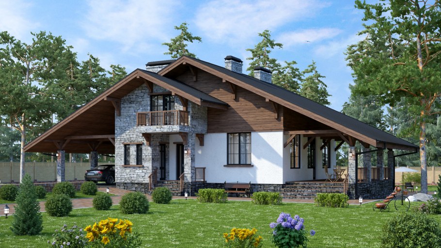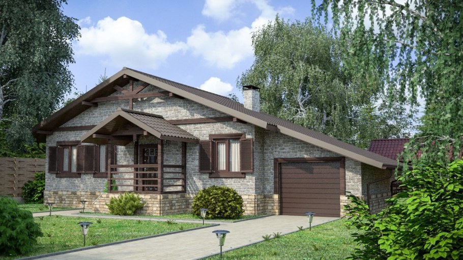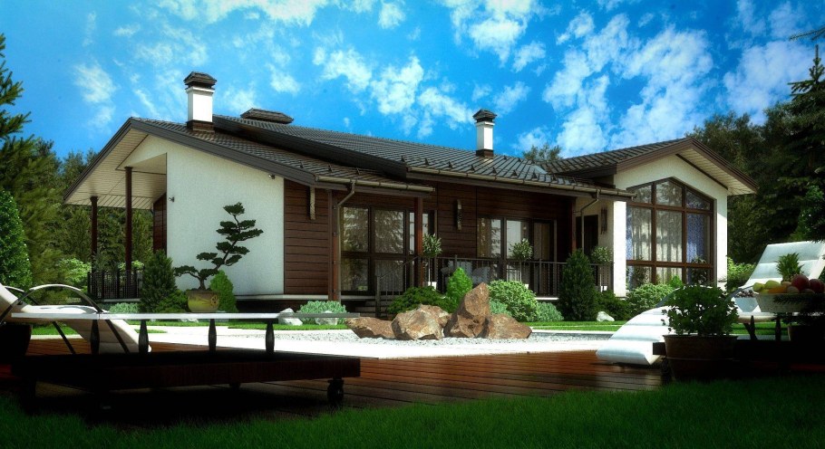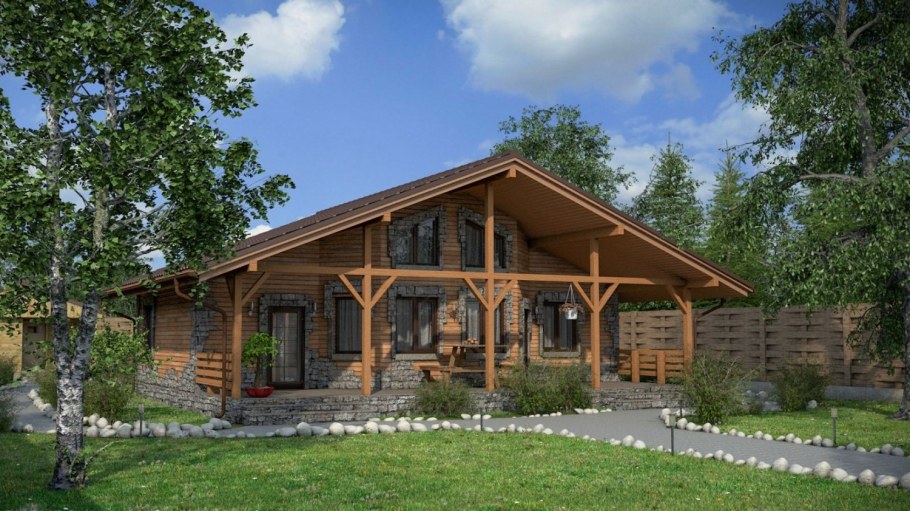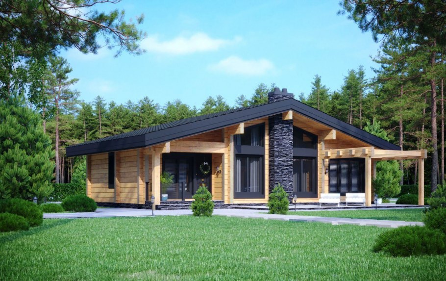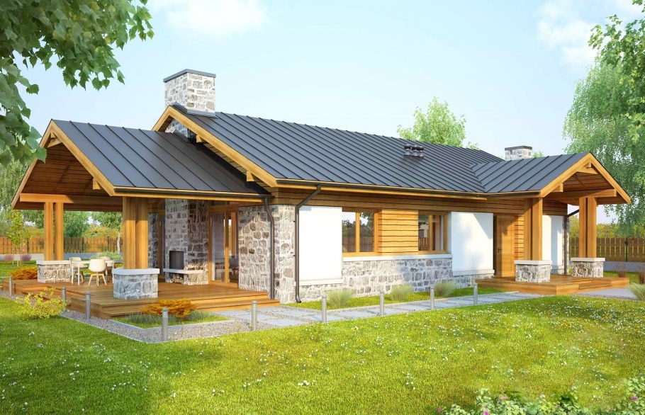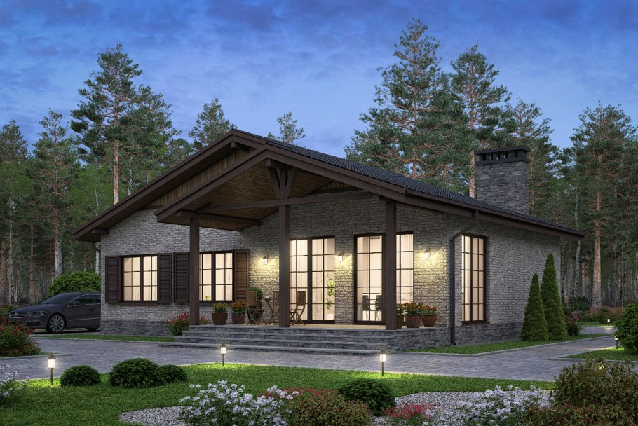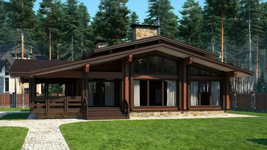 Дом в стиле шале одноэтажный с террасой проекты (69 фото)