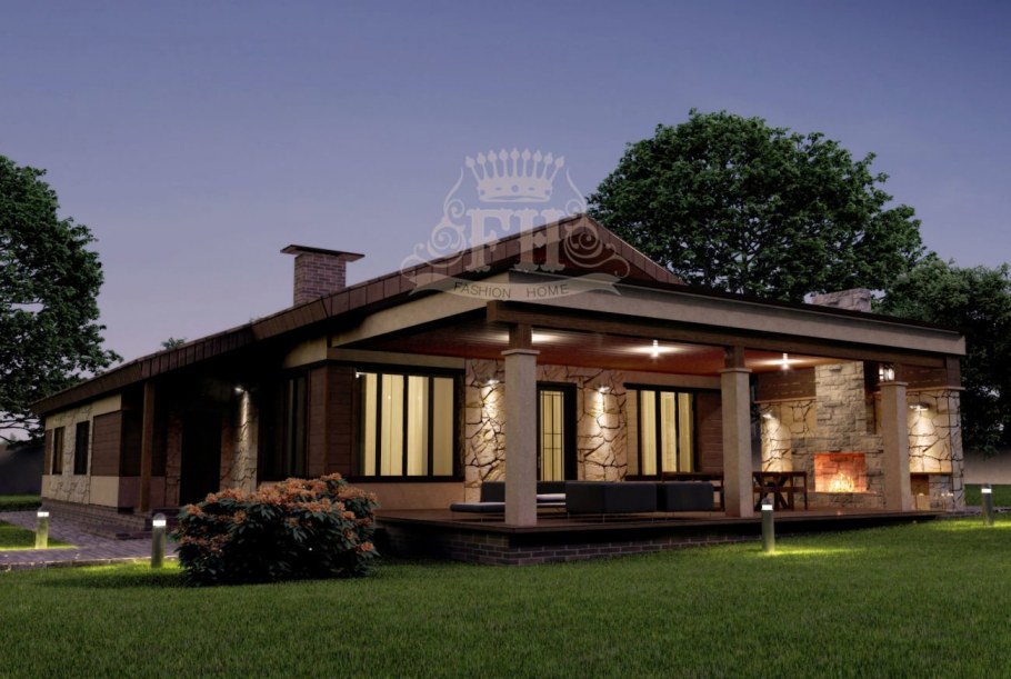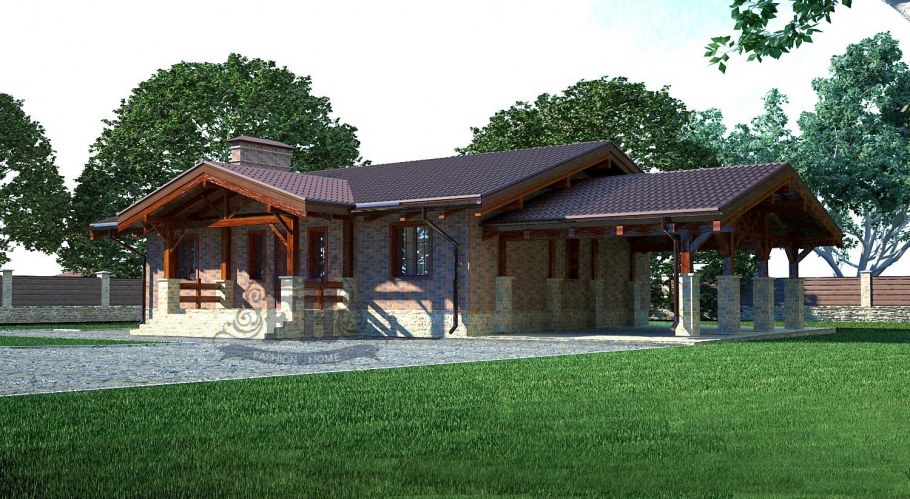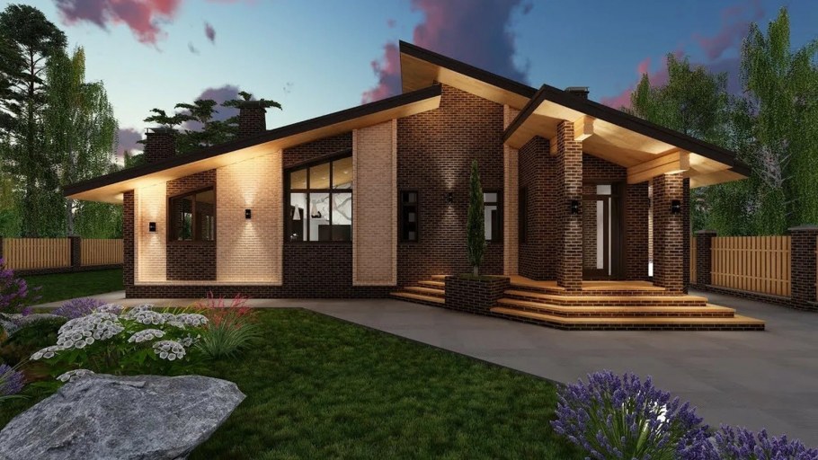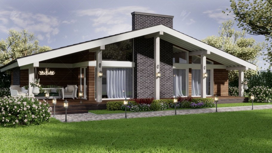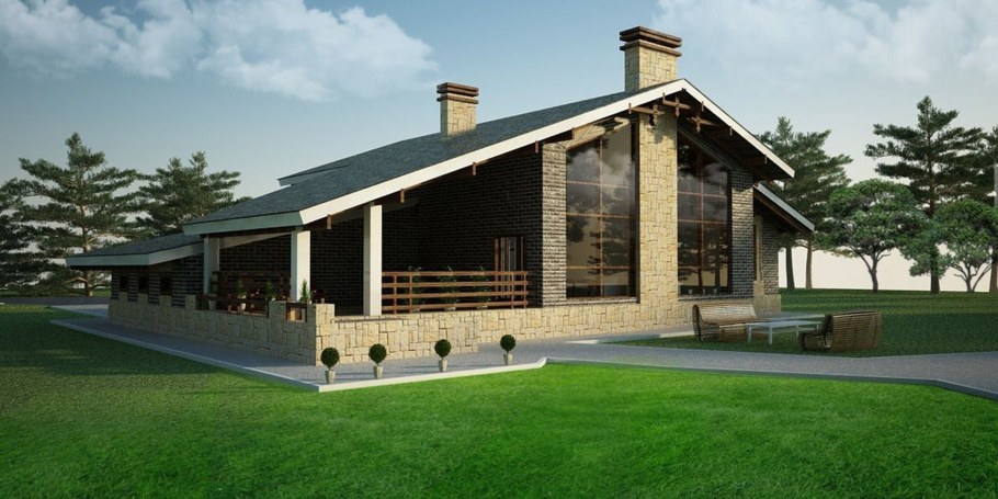 Дом Шале одноэтажный 200 кв.м из кирпича