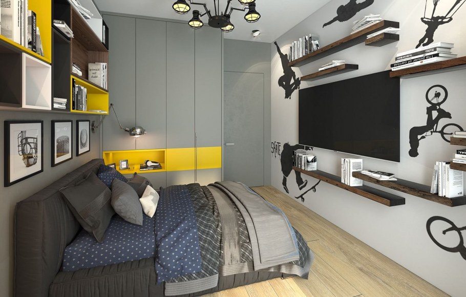 Комната в серо желтых тонах для подростка