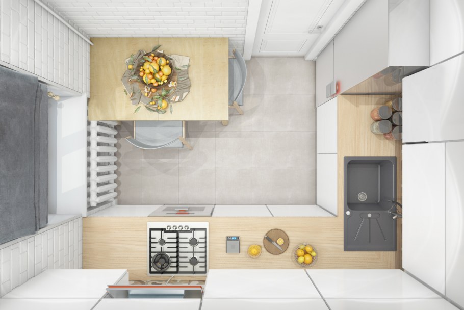 3d проект кухни для маленькой кухни