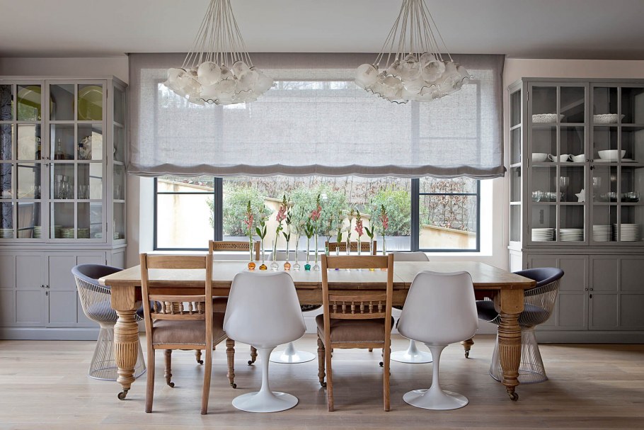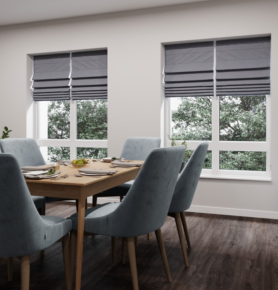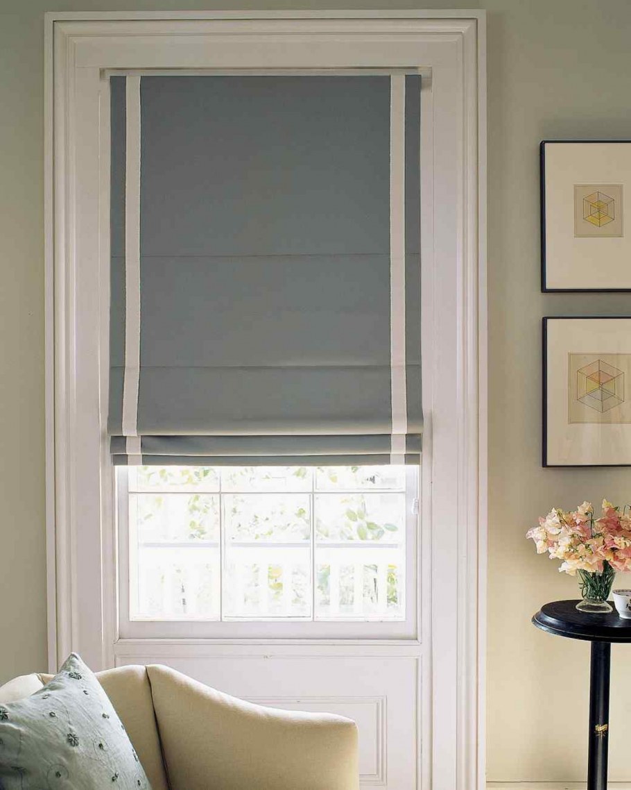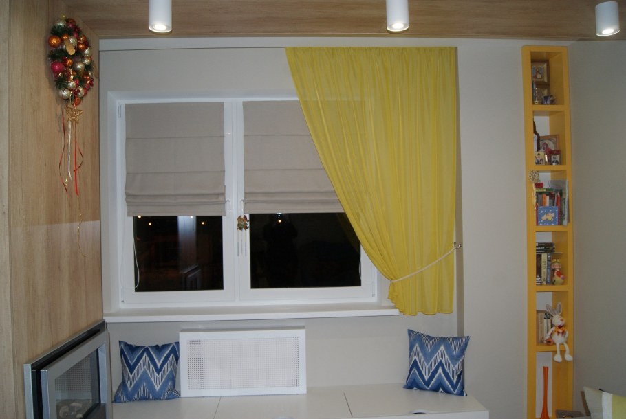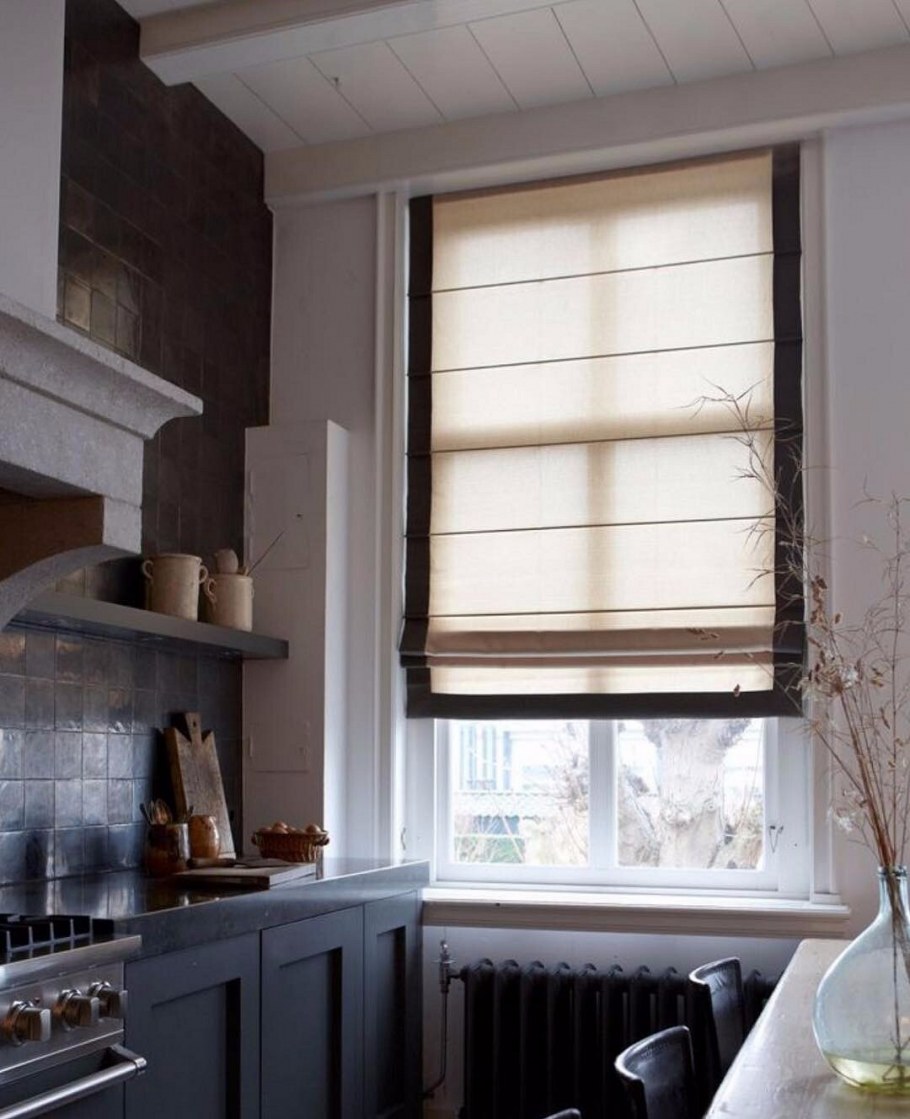 Римские шторы на кухне в интерьере двухстворчатое окно (46 фото)