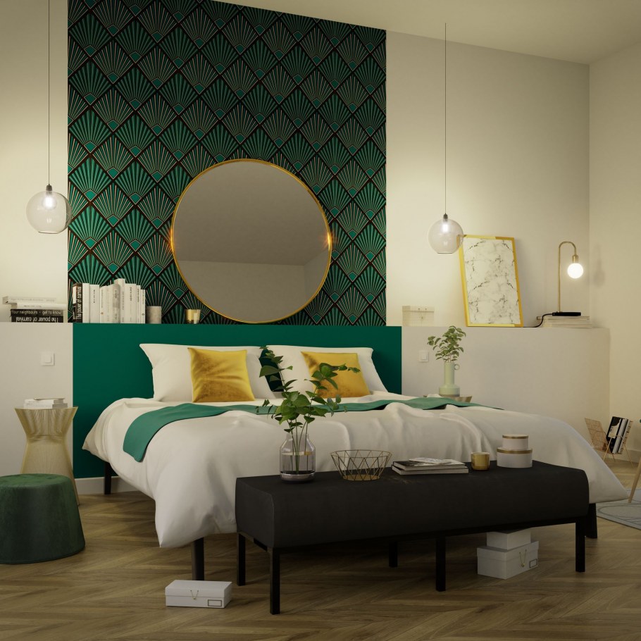 Спальня в изумрудных тонах