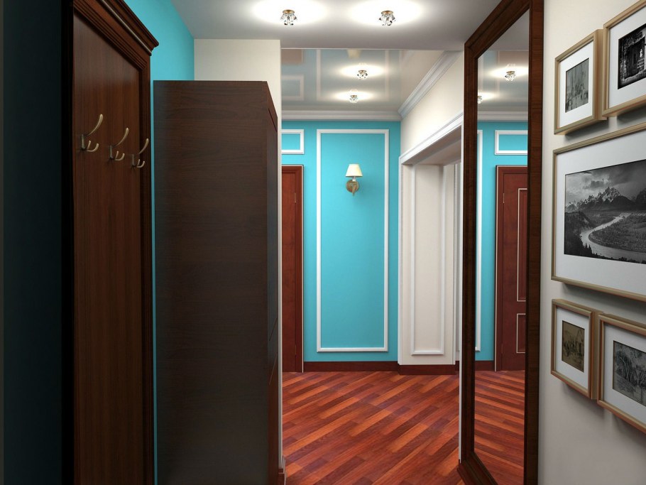 Бирюзовые стены в коридоре