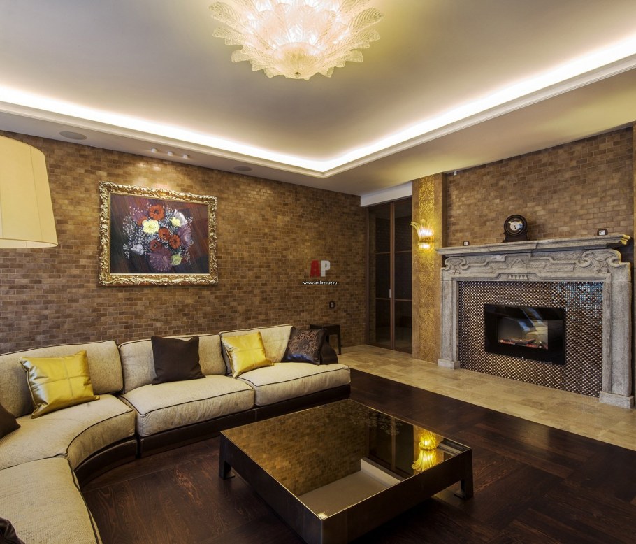Гостиная с камином золото