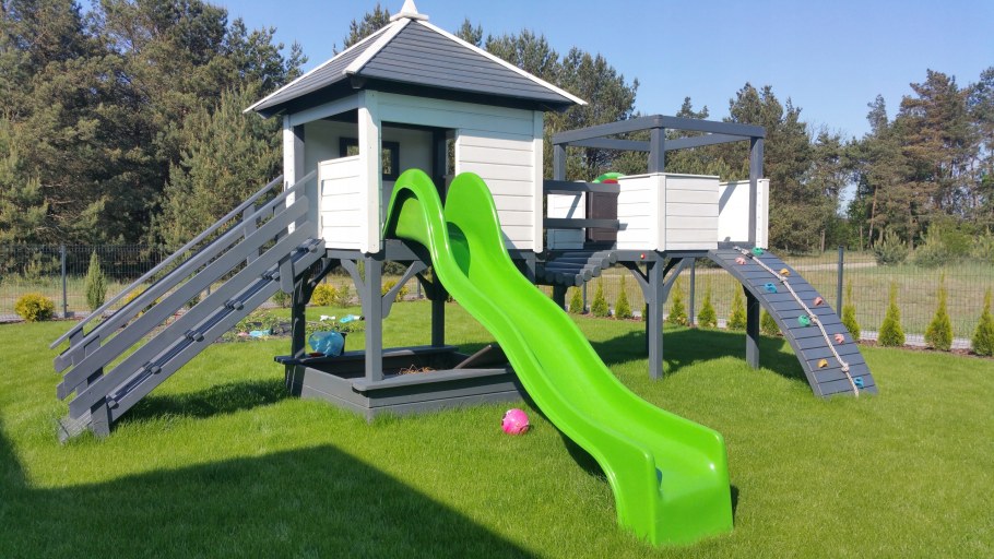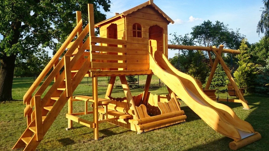 Детские домики с качелями и горкой для дачи