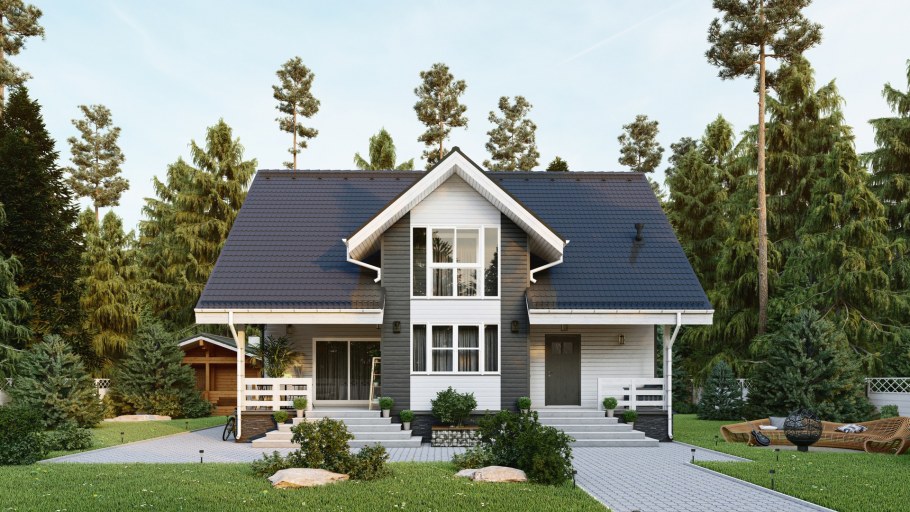 Современный дом с мансардой