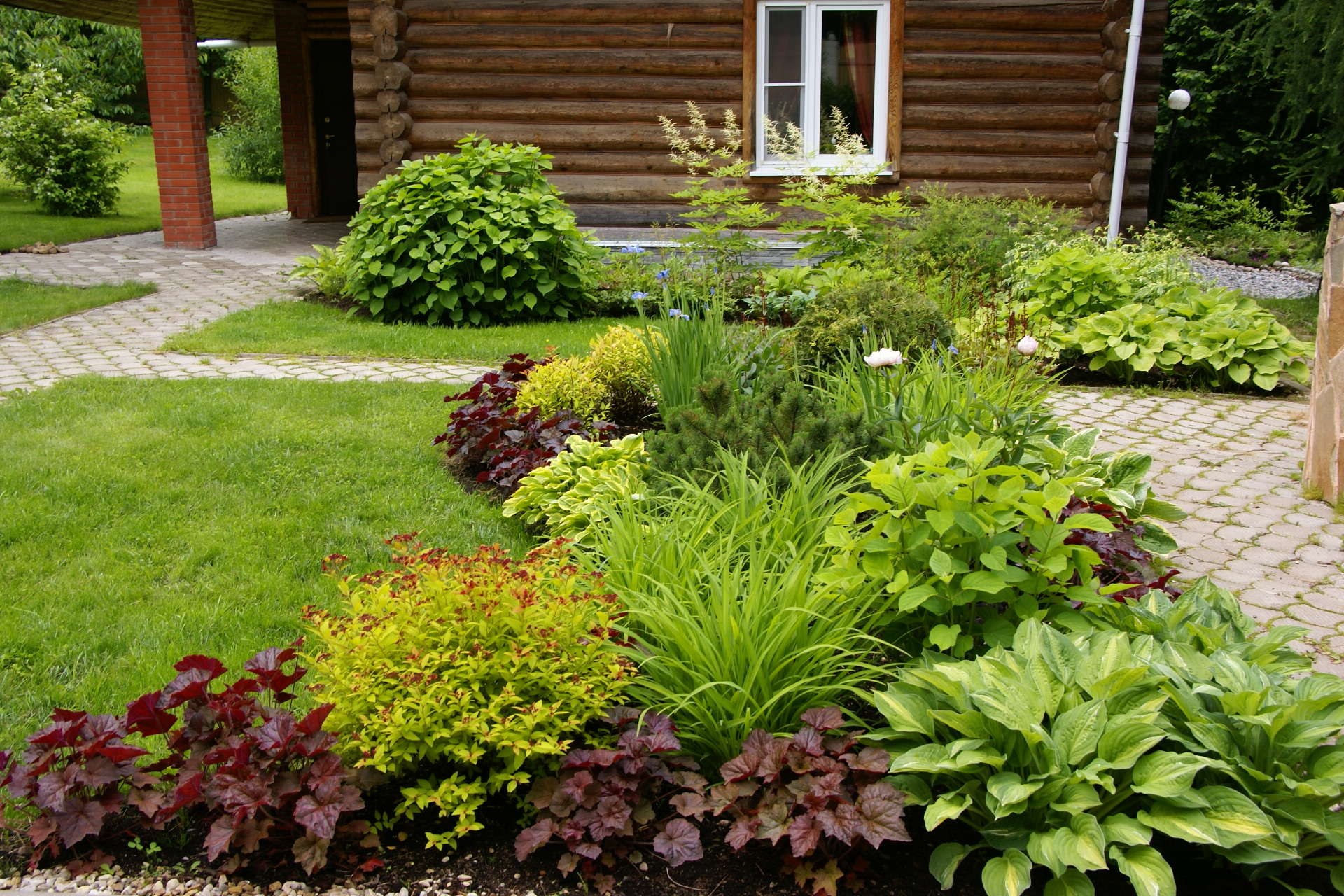 Клумбы с хостой и хвойниками