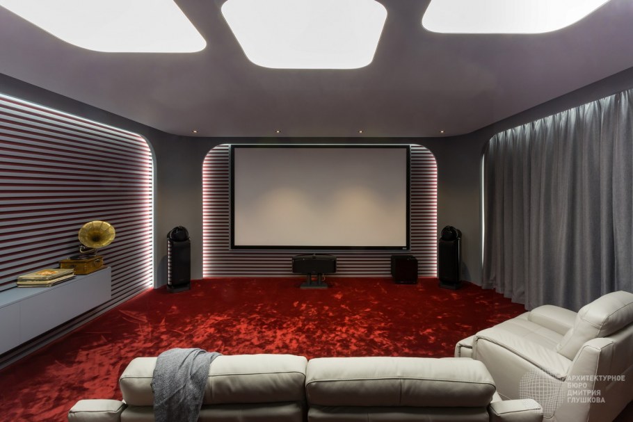 Интерьер домашнего кинотеатра в загородном доме