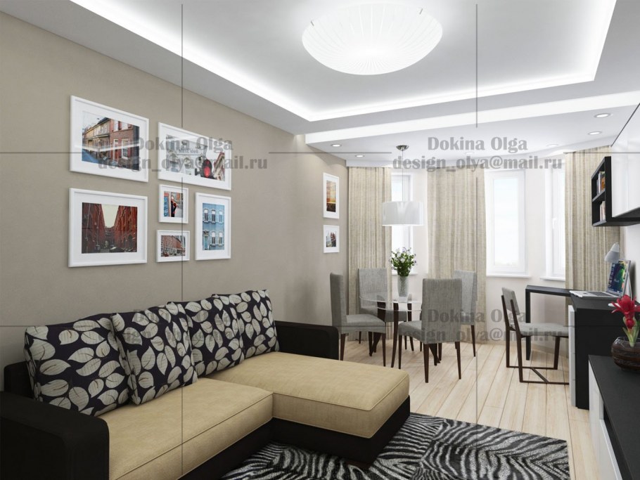 Интерьер однокомнатной квартиры 60 кв м