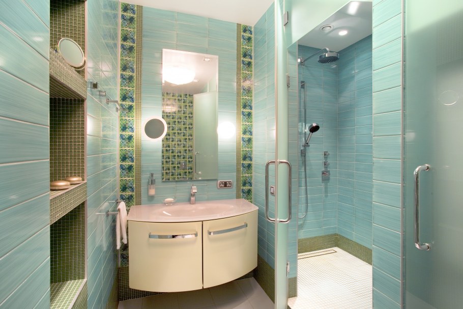Душевая в бирюзовых тонах