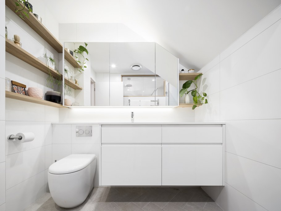 Интерьер ванной комнаты с раковиной с пьедесталом