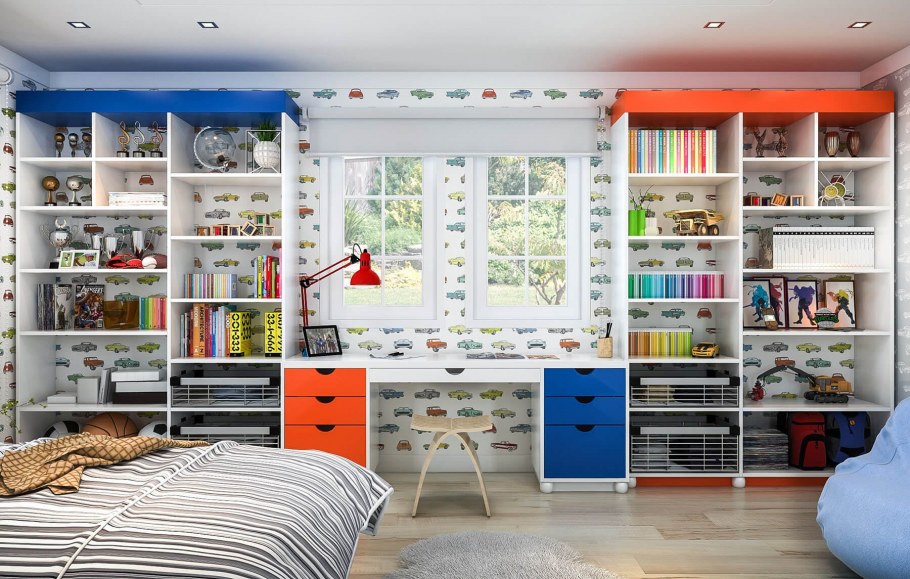 Стеллаж вокруг окна в детскую