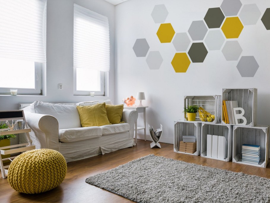 Геометрический декор стен желтые