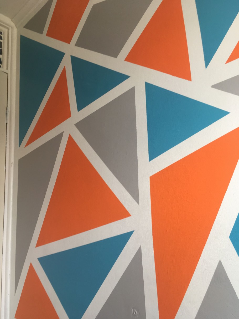Треугольники на стене с помощью малярного скотча