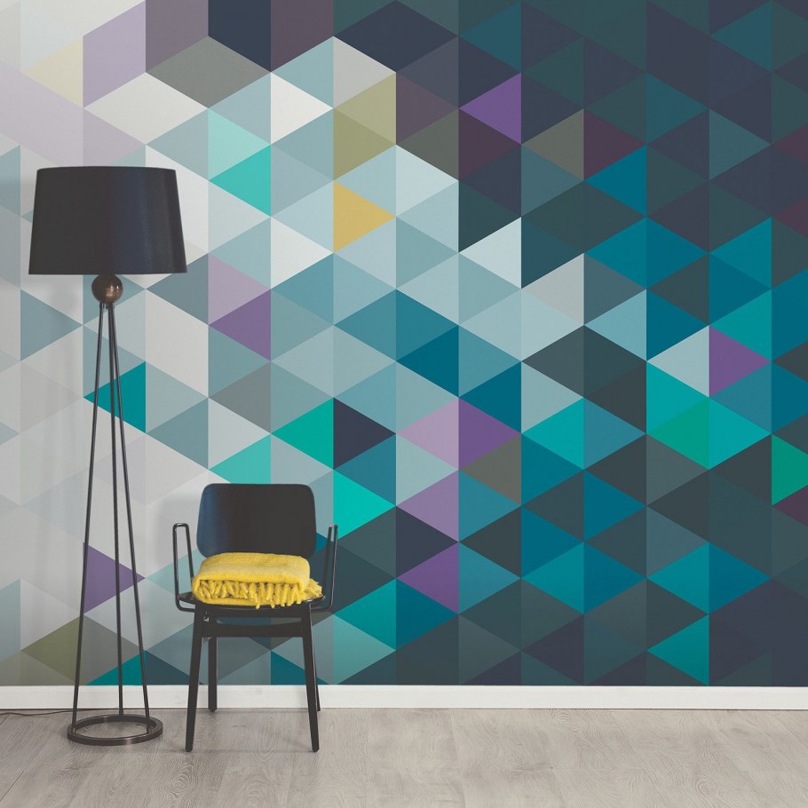 Обои с треугольниками в интерьере