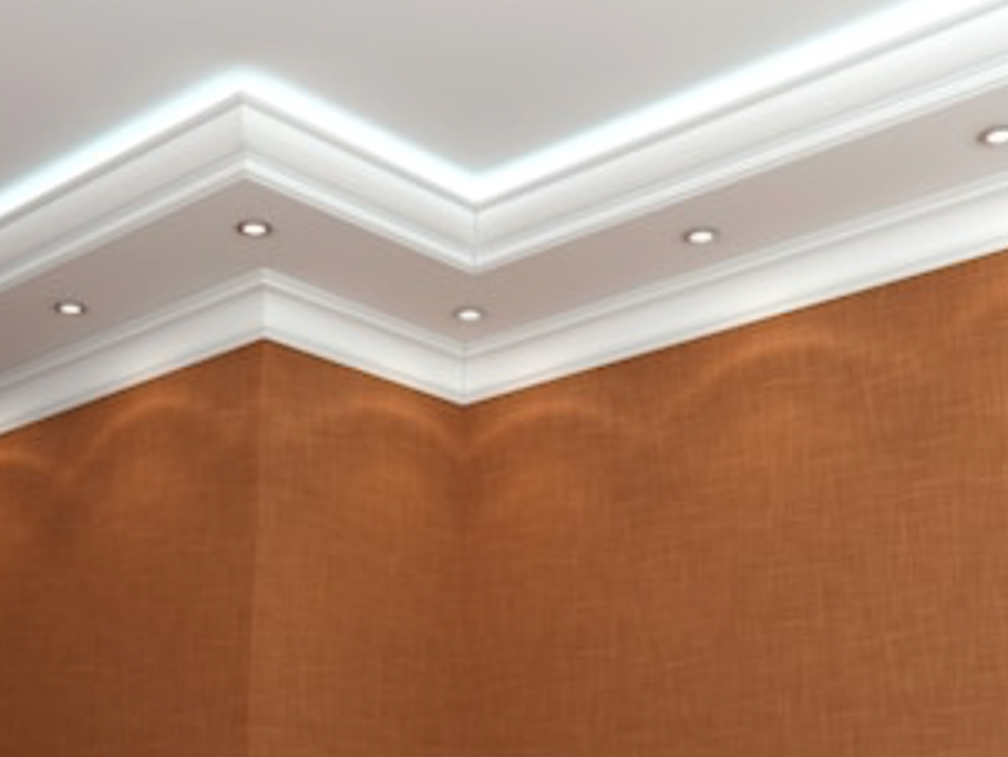 Двухуровневый потолок из гипсокартона с потолочным плинтусом