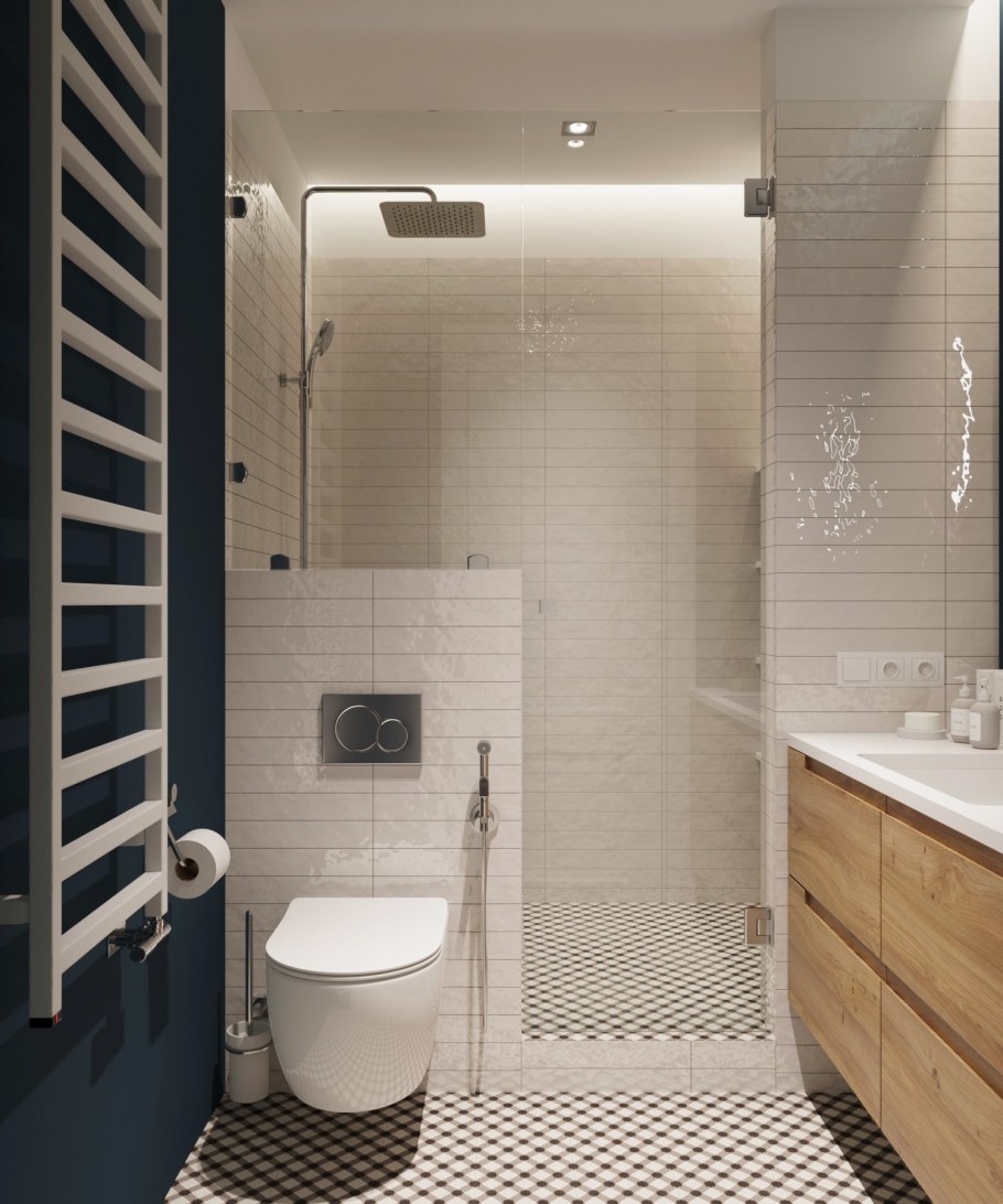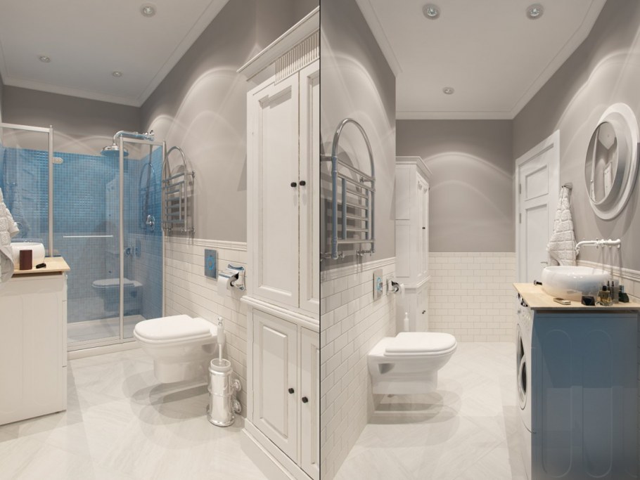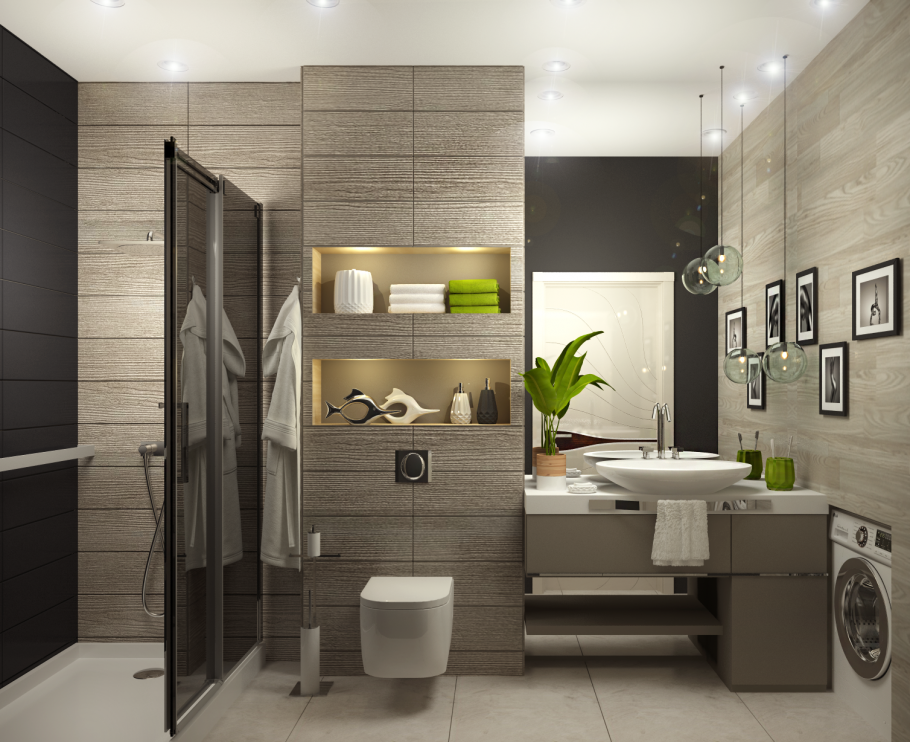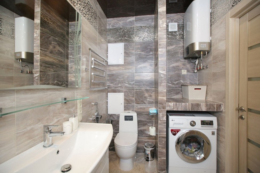 Интерьер совмещенного санузла 3.5 кв.м со стиральной машиной