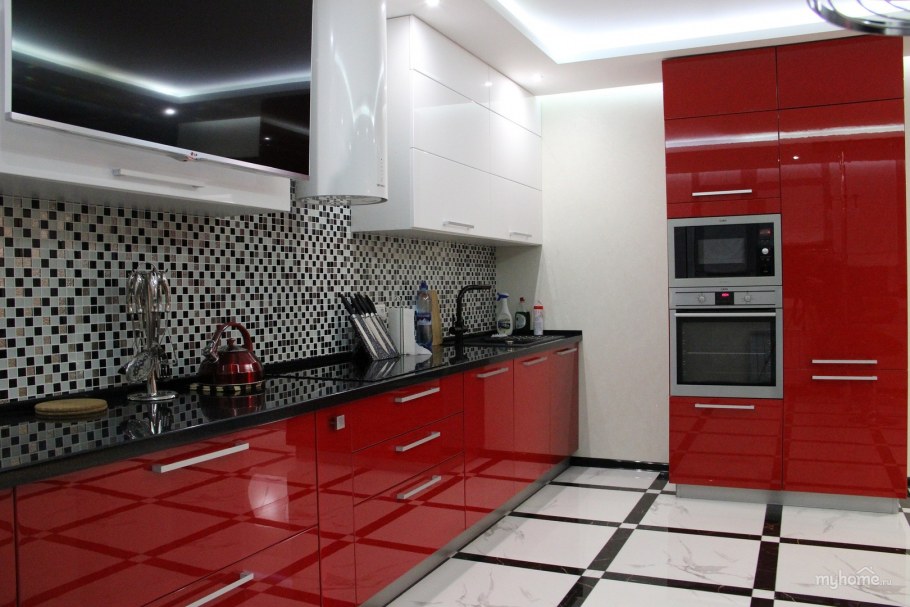Красная плитка на кухне