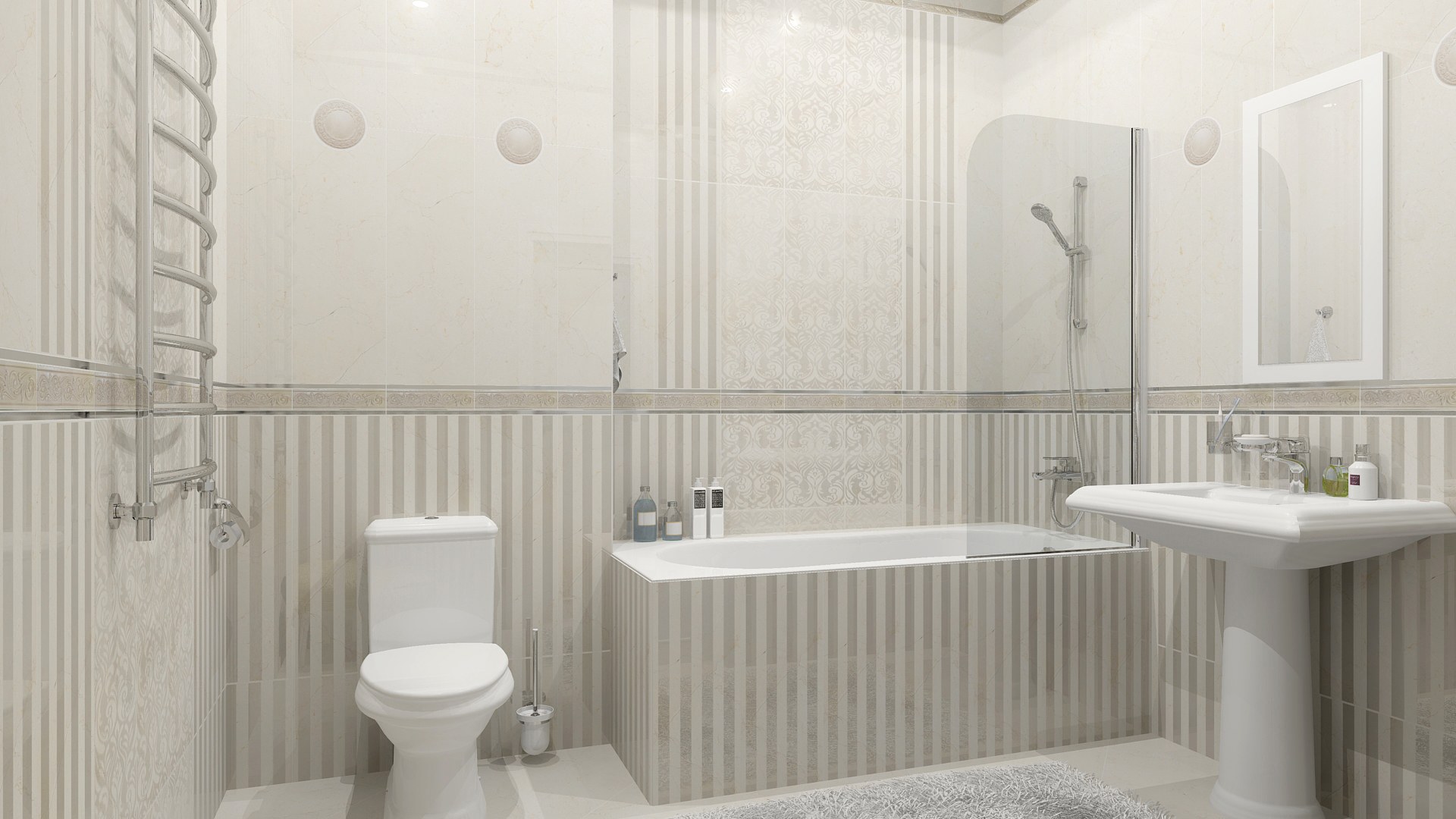 Классическая плитка в полоску для ванной комнаты