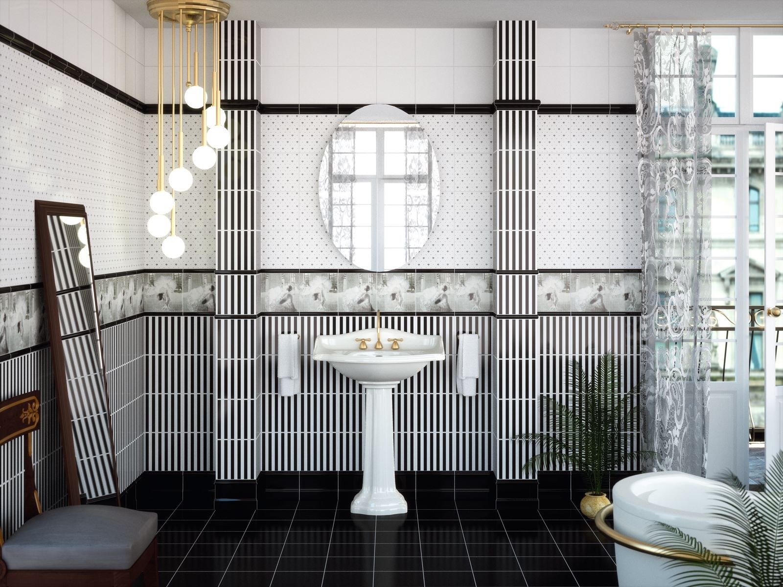 Полосатая ванная комната