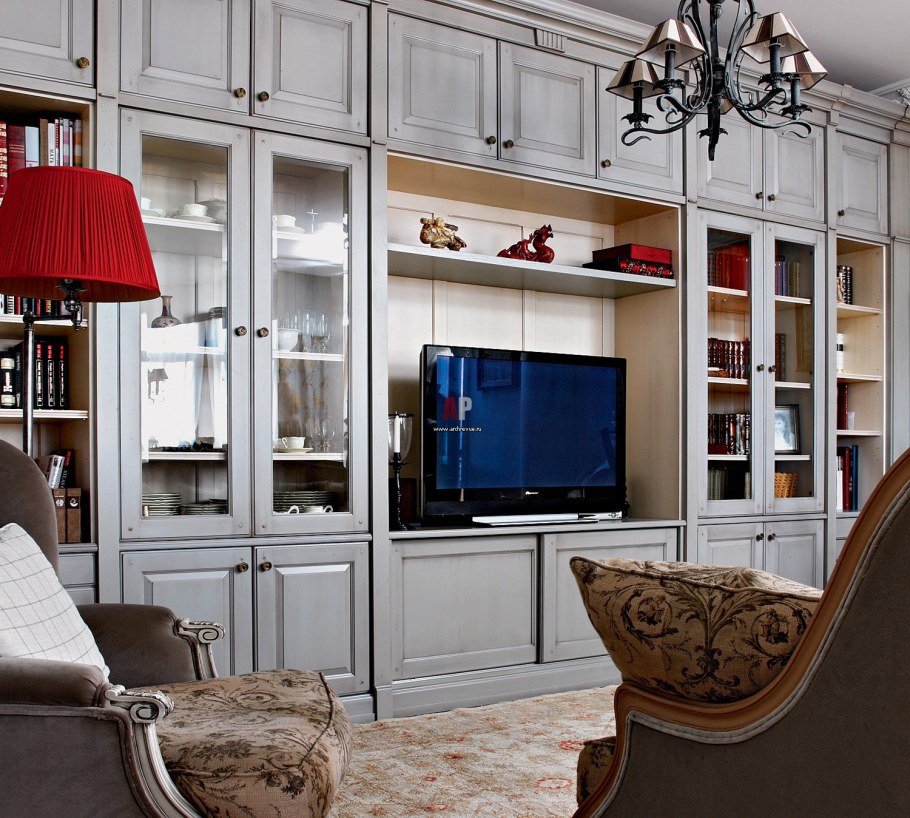 Шкафы вокруг окна в гостиной