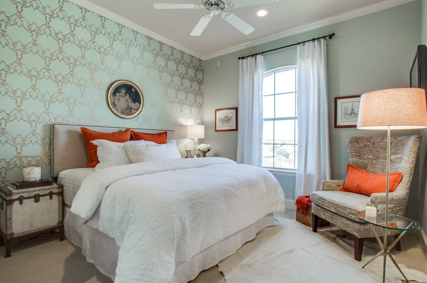 Мятные стены в интерьере спальни