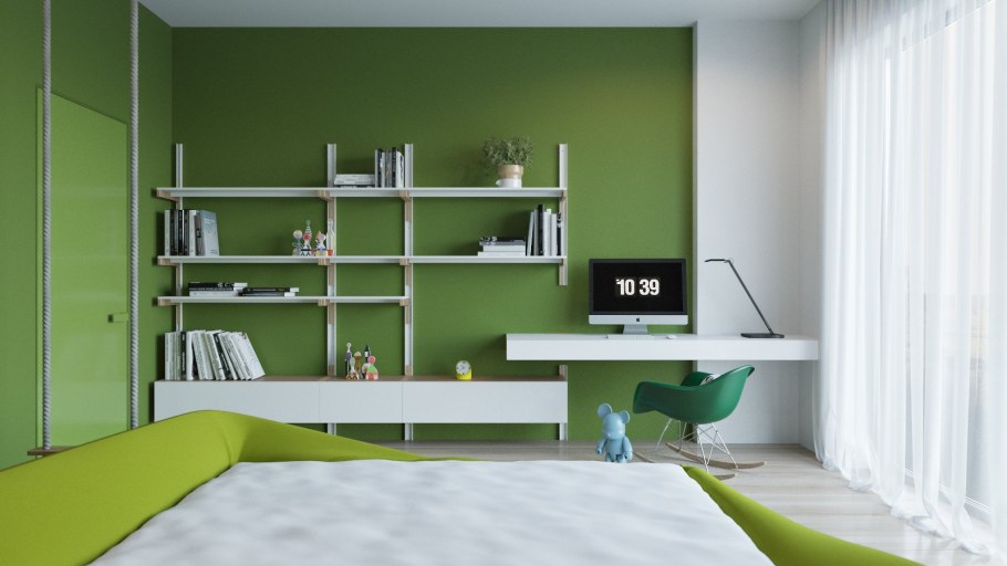 Обои в детскую с зеленой мебелью