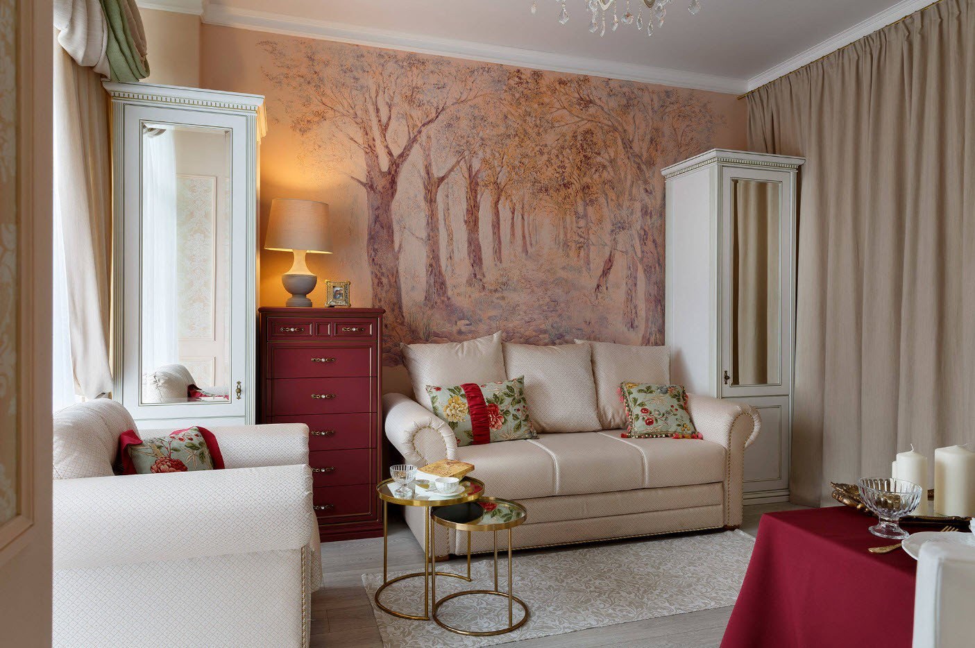 Бежевые стены в интерьере гостиной и их комбинирование фото