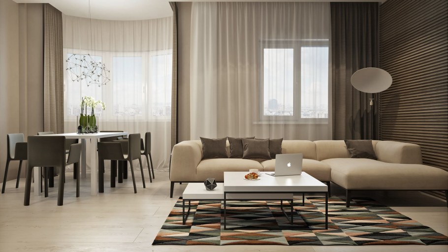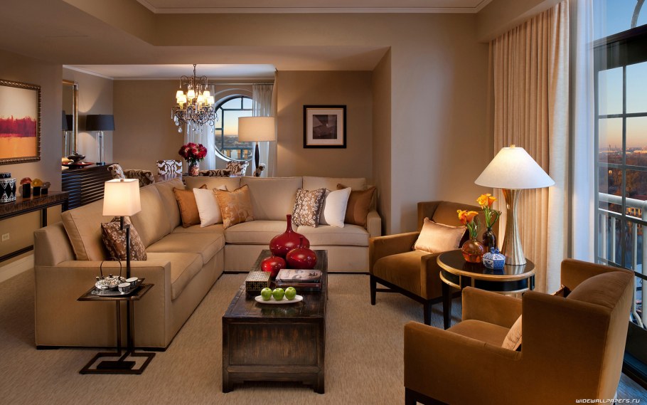 Бежевые обои в интерьере гостиной и их комбинирование (56 фото)