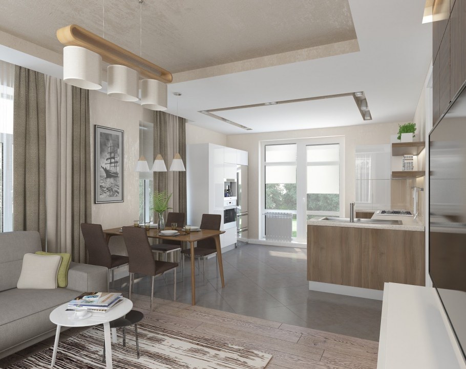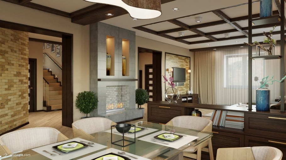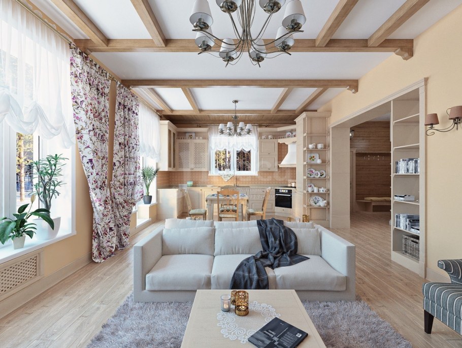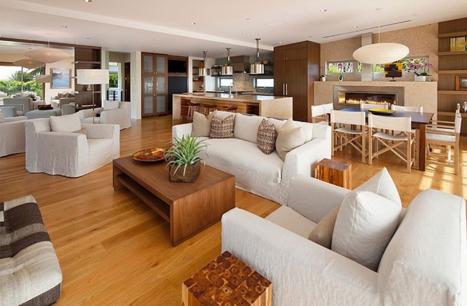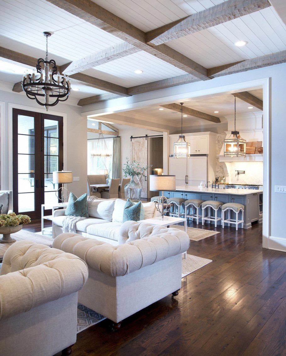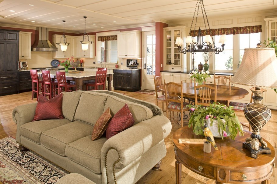 Дизайн загородного дома внутри кухни совмещенной с гостиной (41 фото)