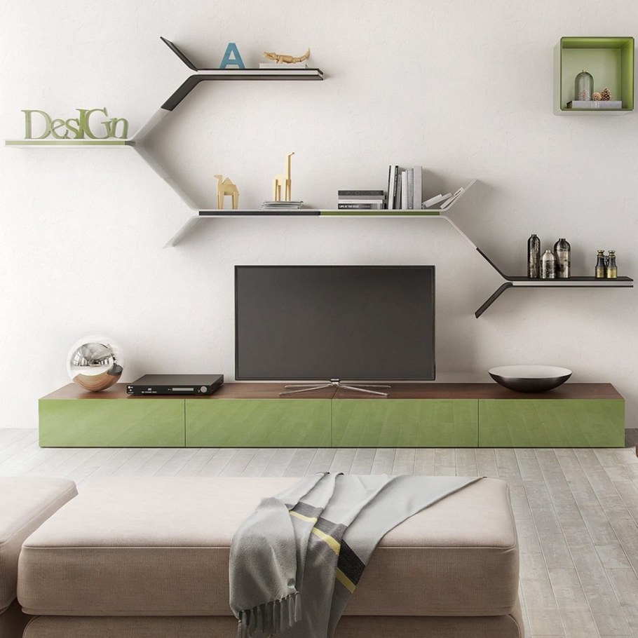 Декор полки над телевизором в интерьере (47 фото)