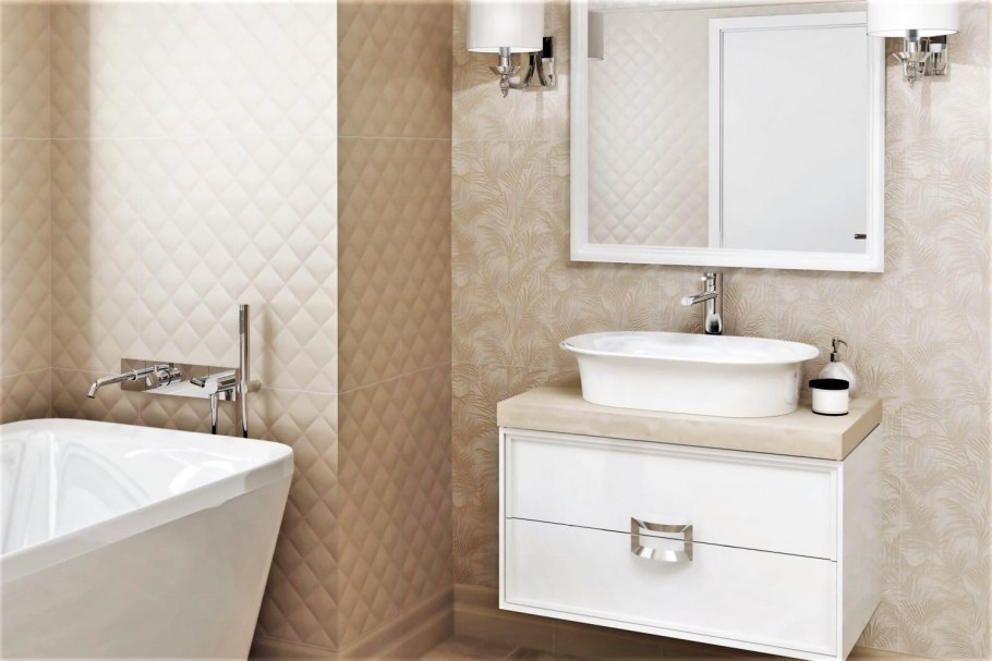 Дизайн ванной комнаты 2 на 1.5 метра бежевый