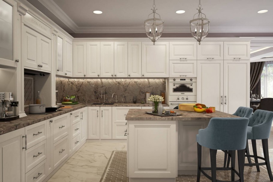 Белая кухня в неоклассическом стиле (35 фото)
