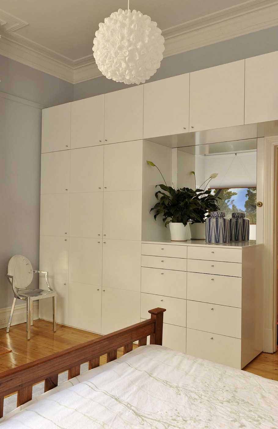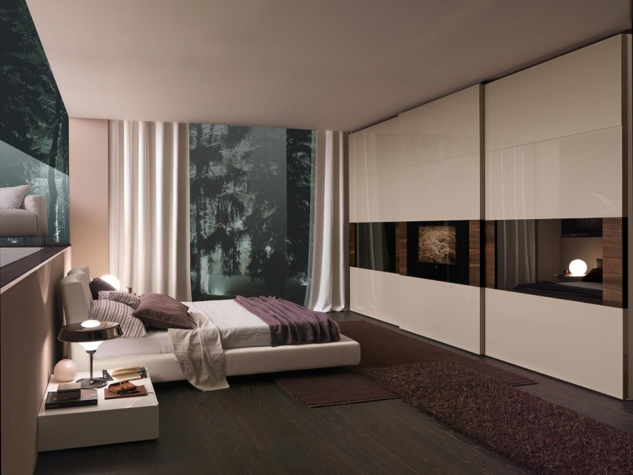 Спальня со встроенным шкафом во всю стену (46 фото)