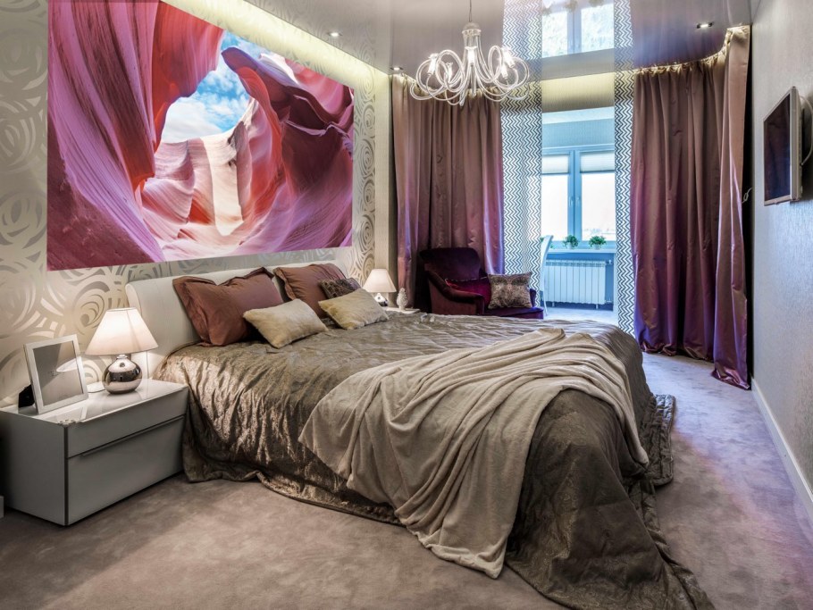Сочетание серого и фиолетового в интерьере спальни (43 фото)