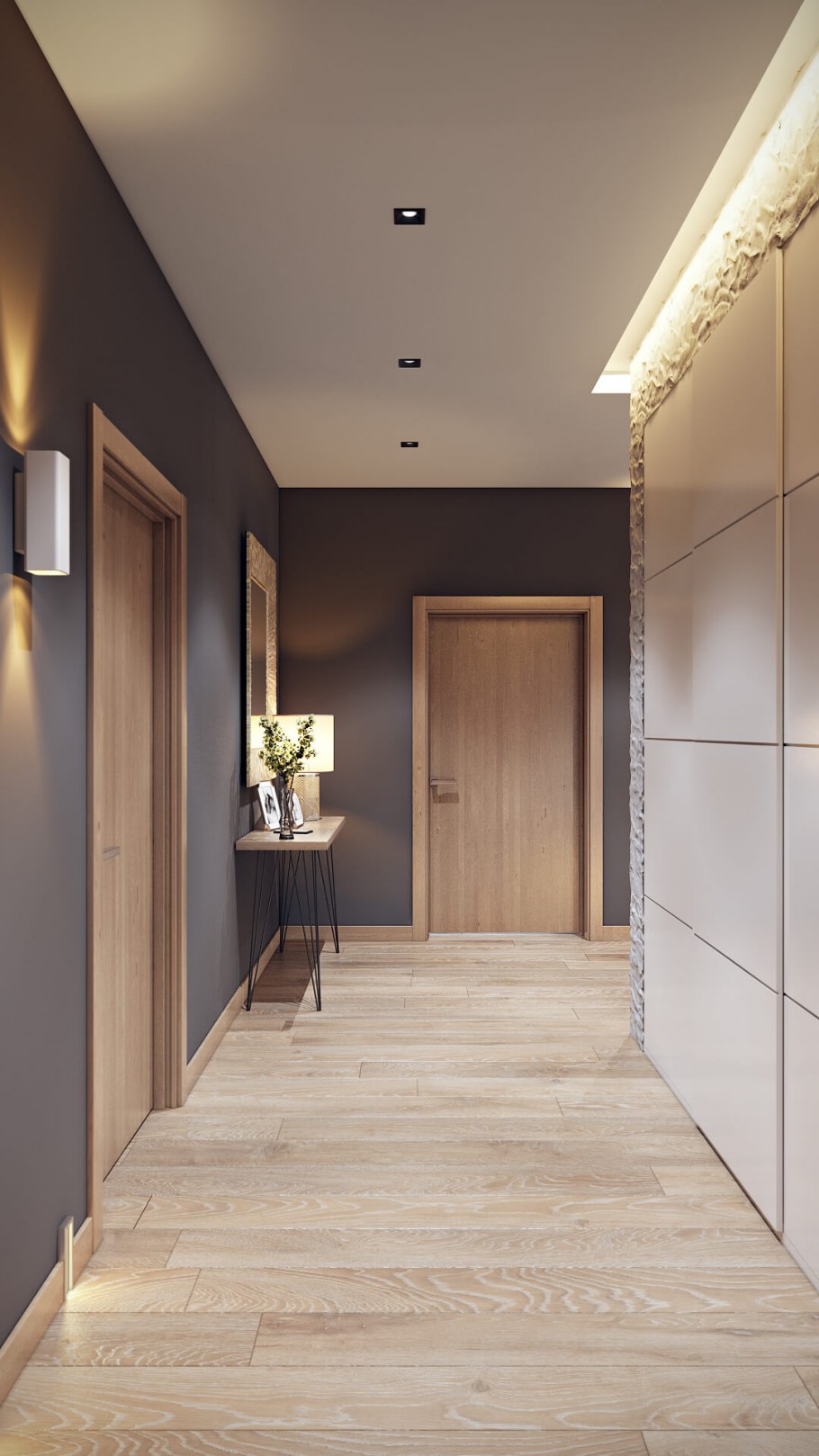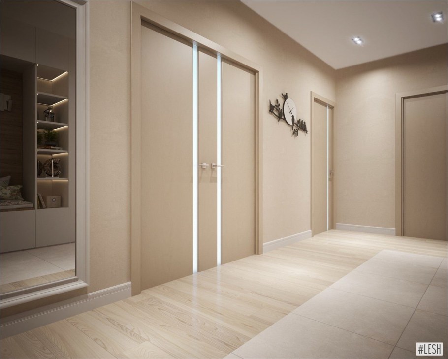 Сочетание коричневого пола с бежевой дверью в интерьере (52 фото)