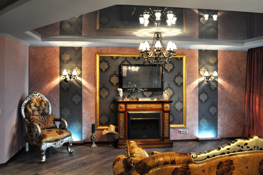 Гостиная с камином золото