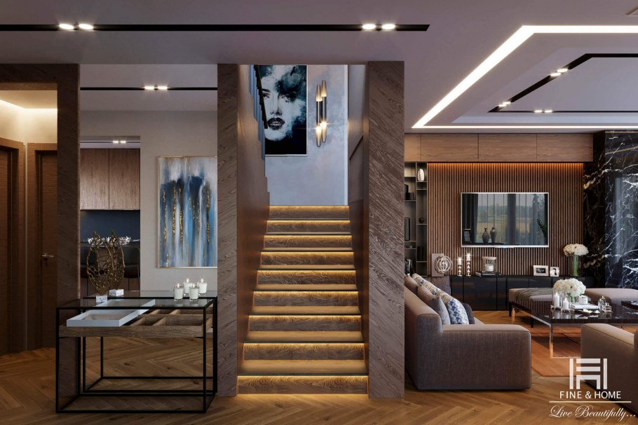 Современная классика в двухуровневой квартире
