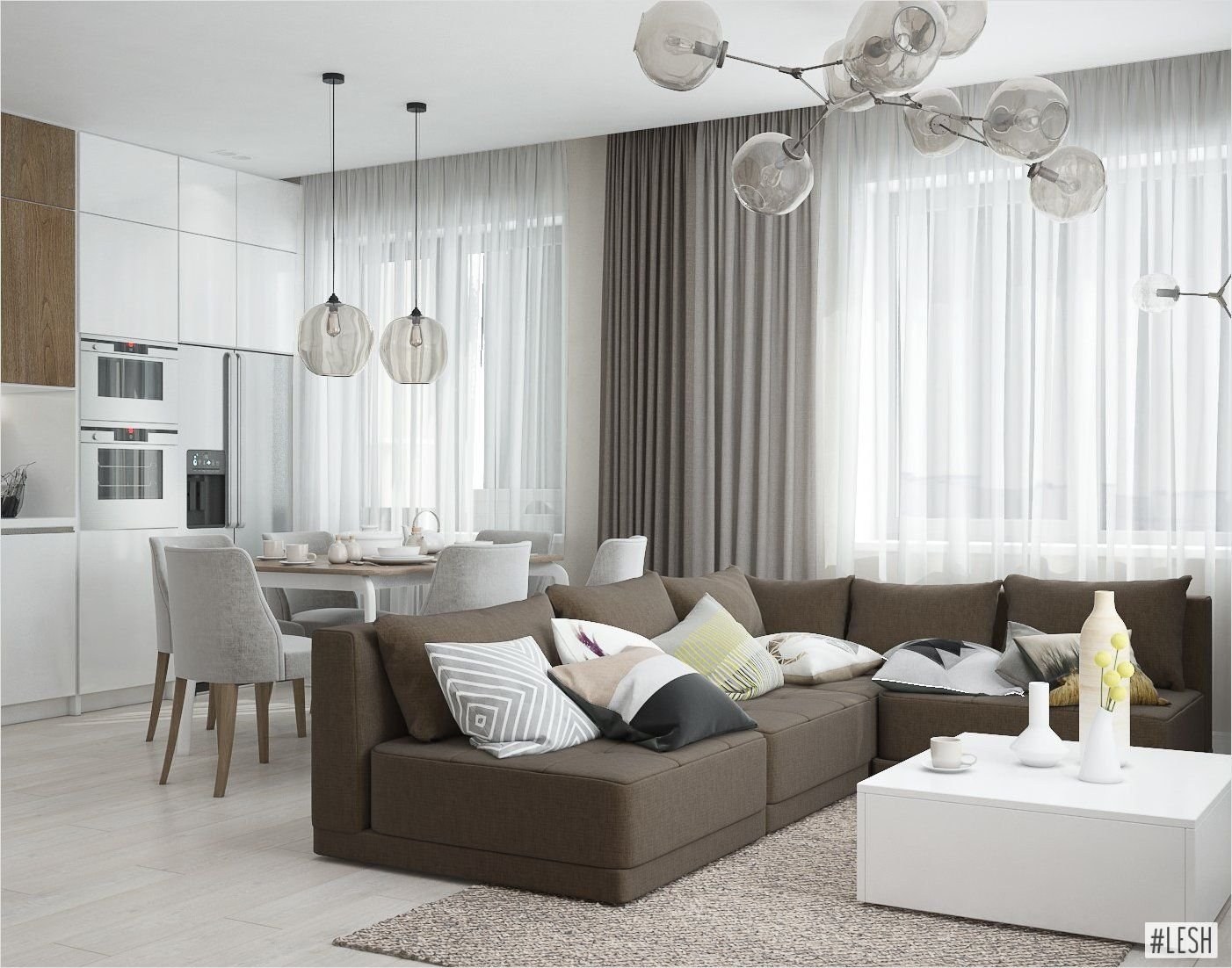 Кухня гостиная в светлых тонах