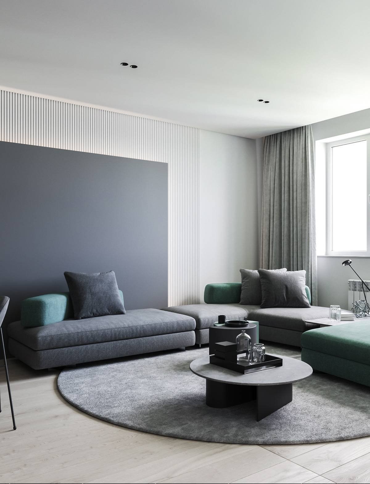 Серая гостиная в современном стиле в интерьере (48 фото)