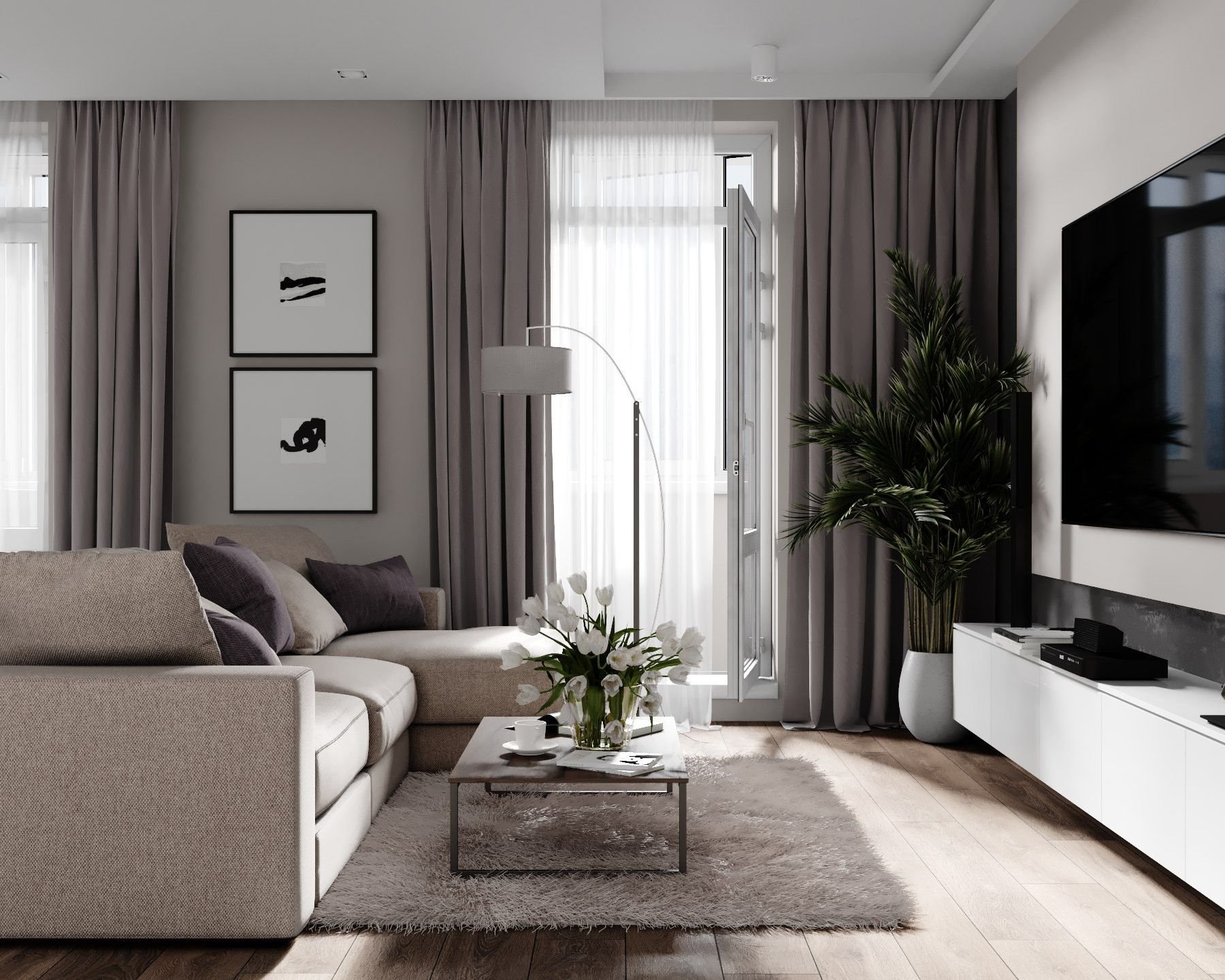 Гостиная в серо коричневых тонах