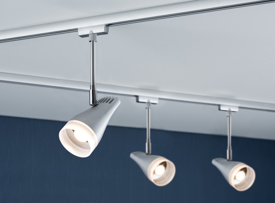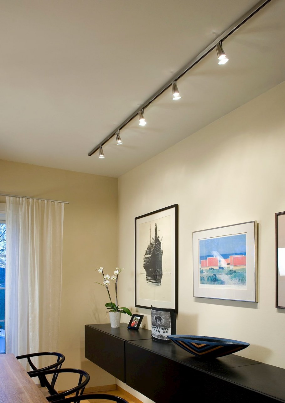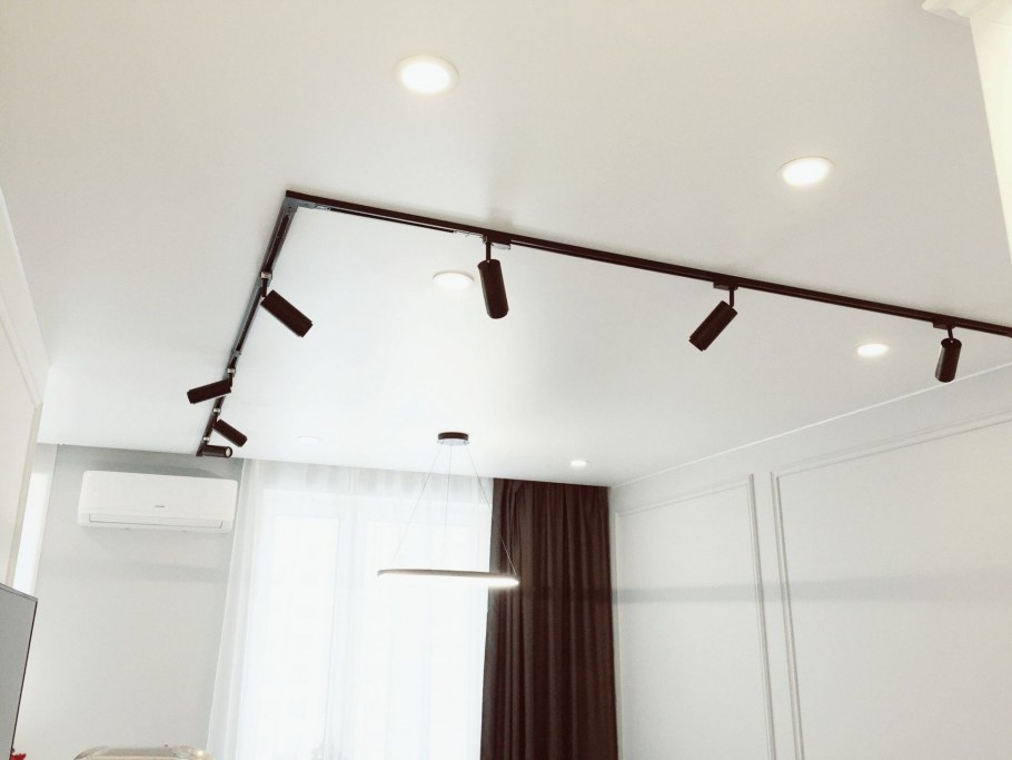 Трековые светильники для натяжных потолков в интерьере (36 фото)