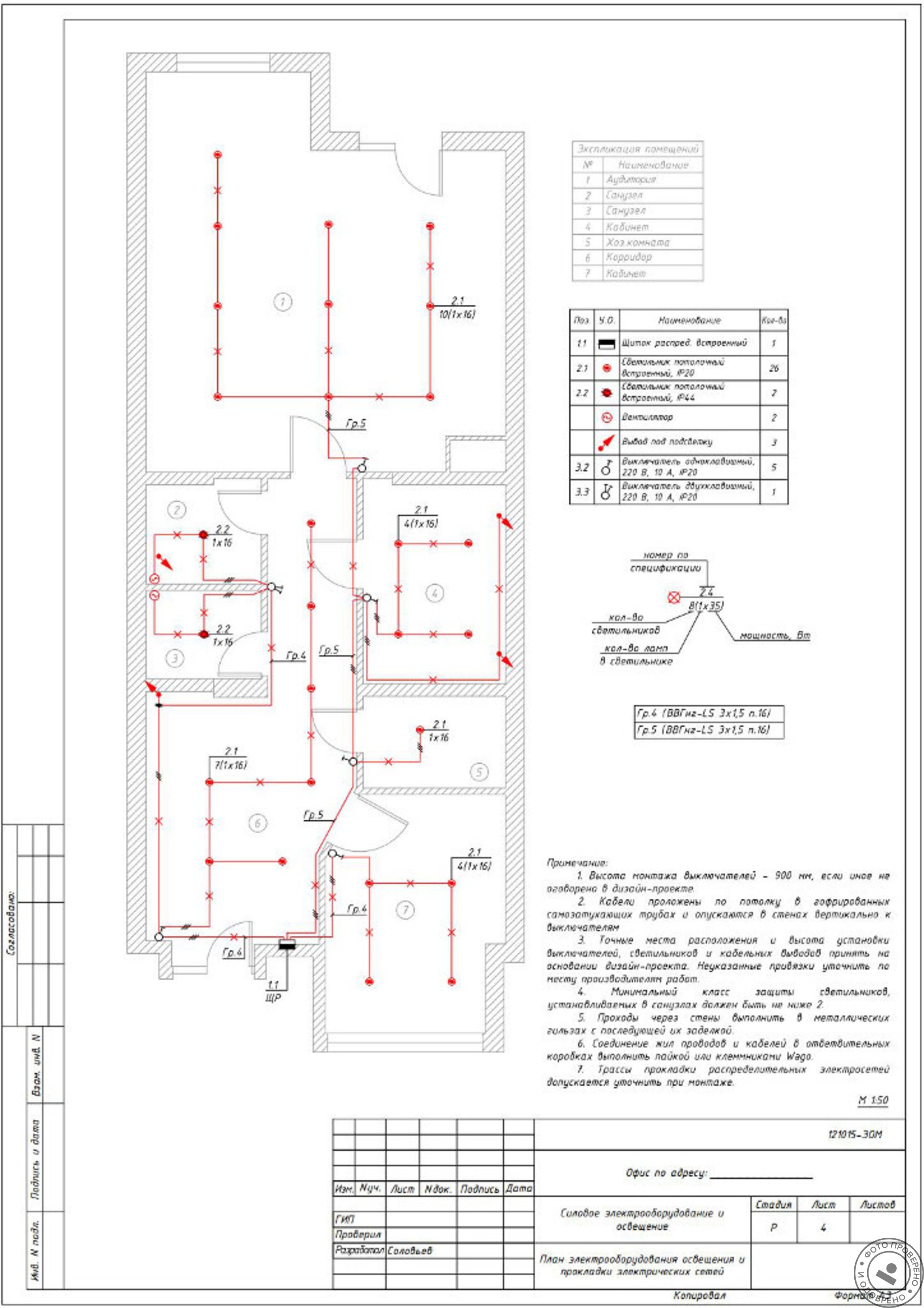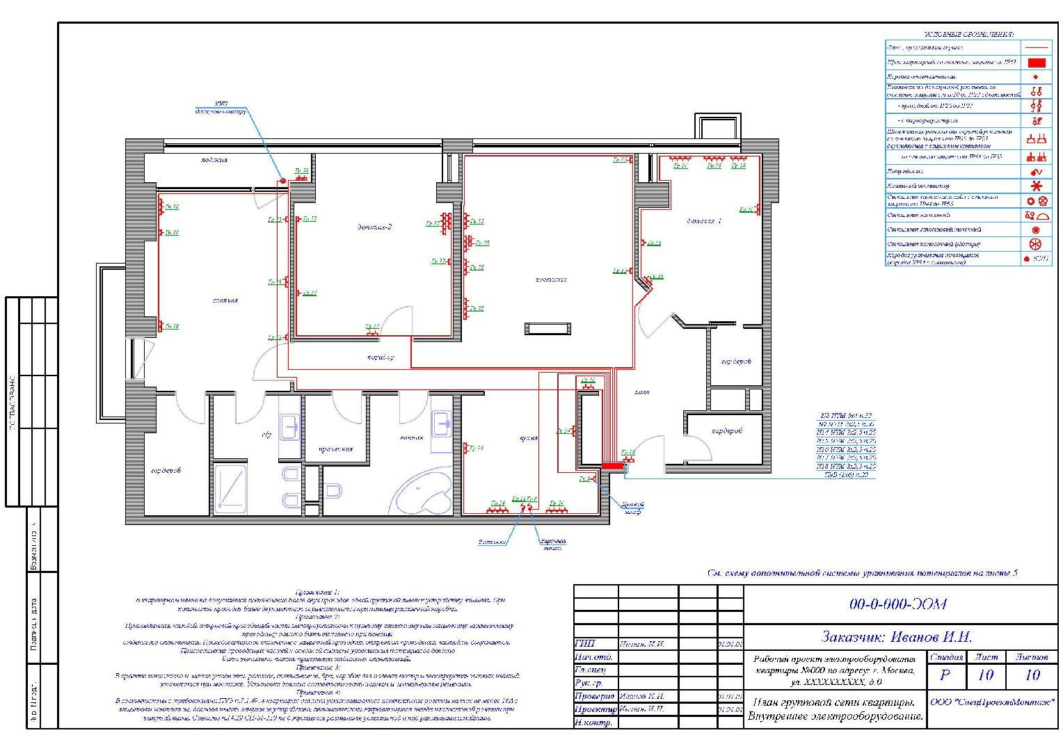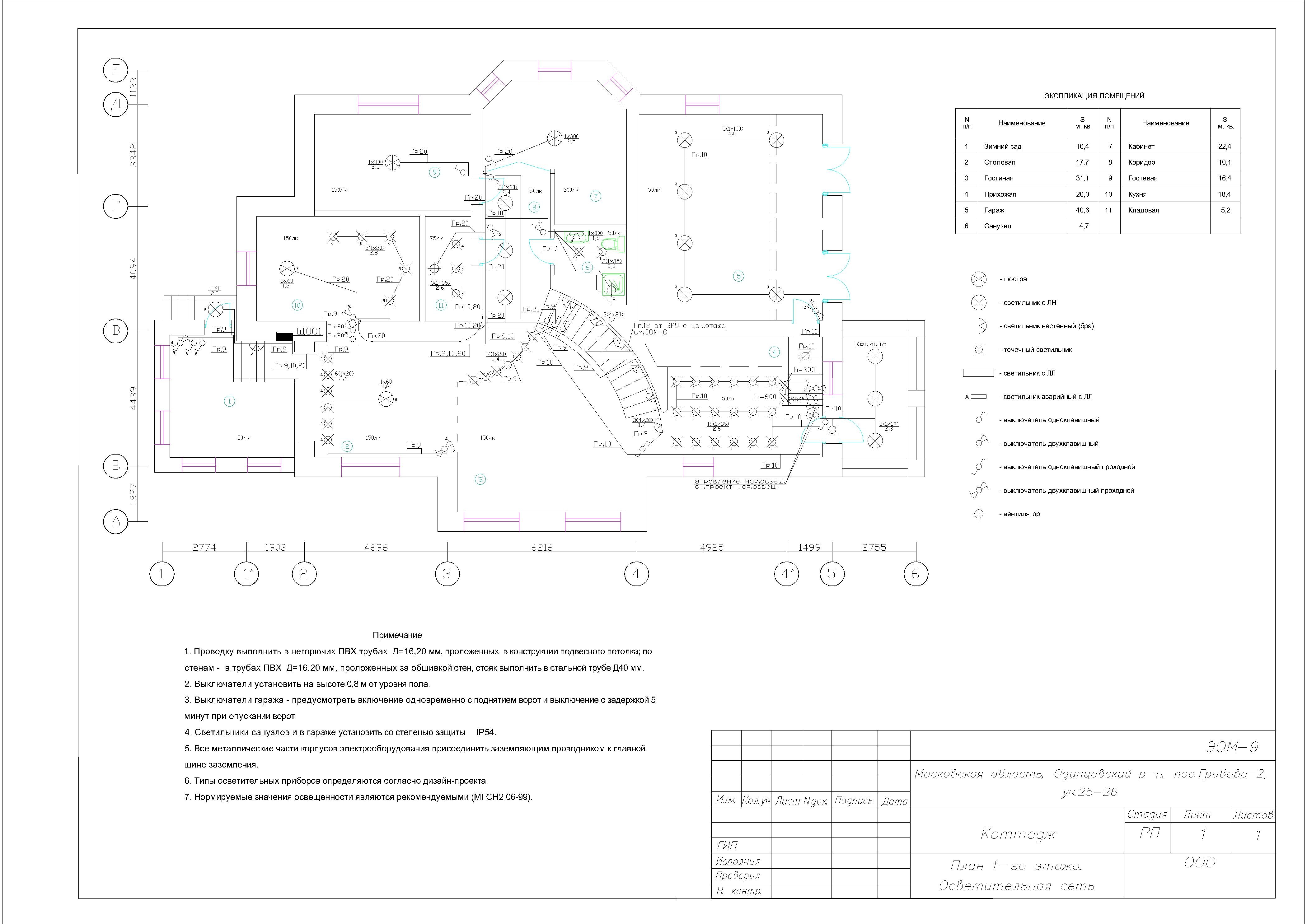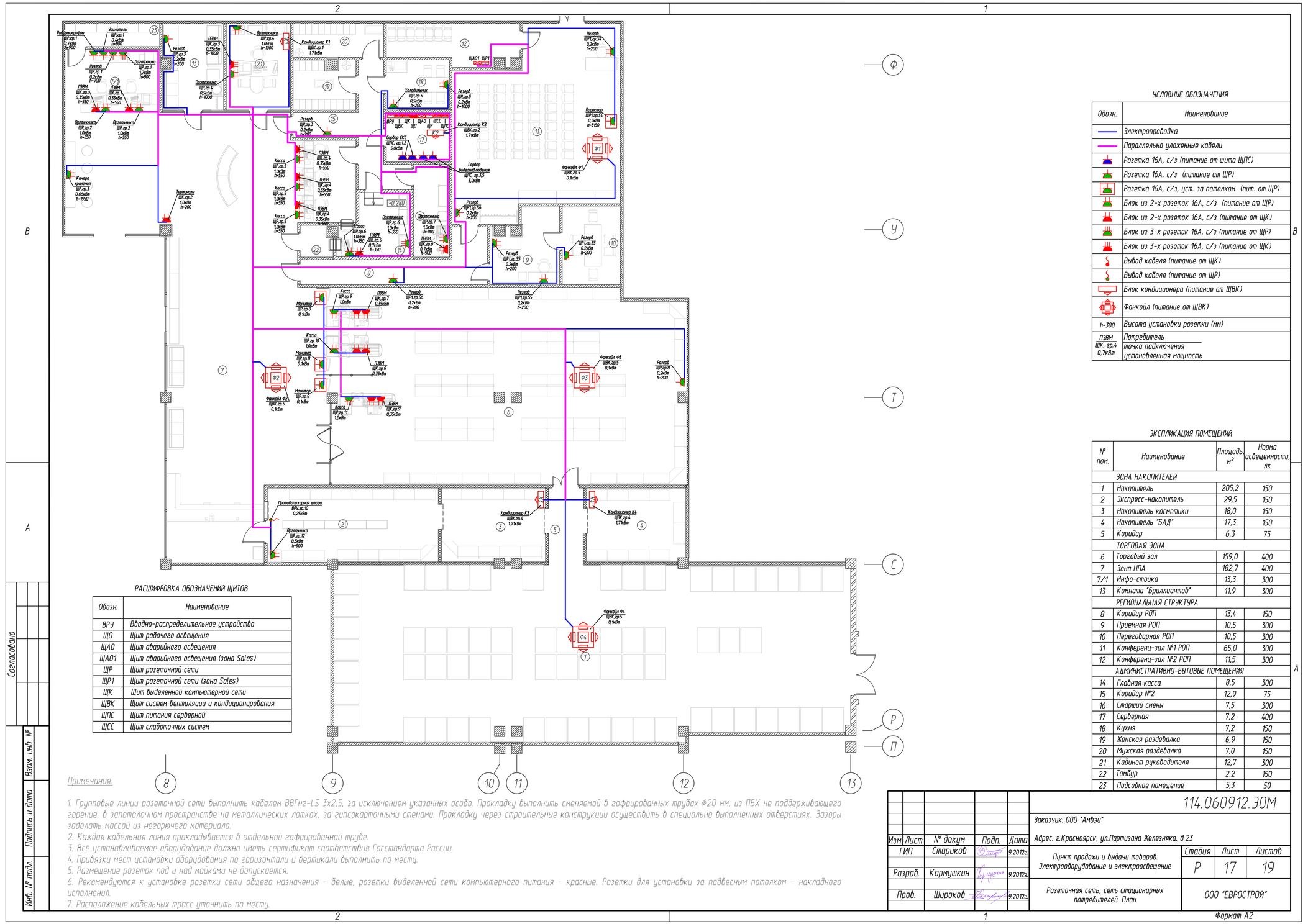 Исполнительная схема сетей электроснабжения и электроосвещения