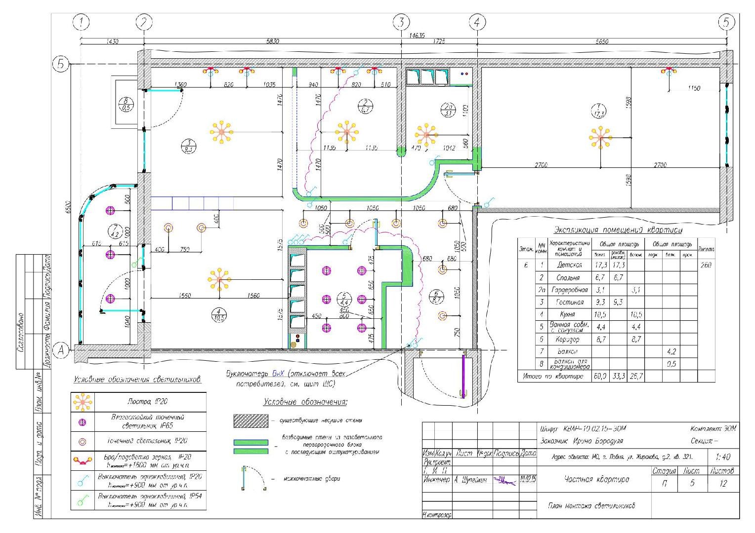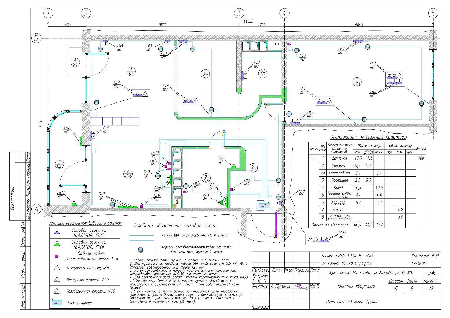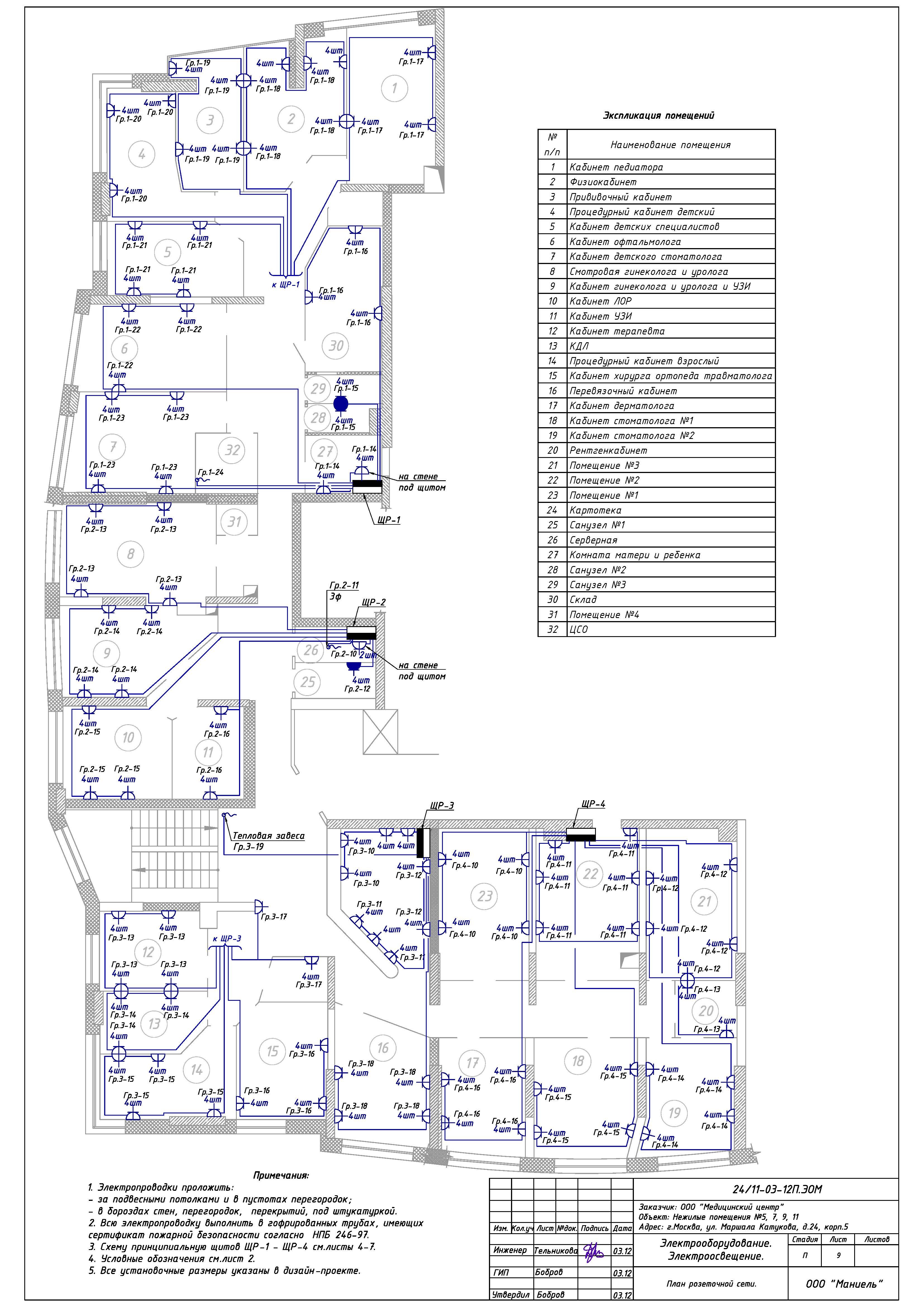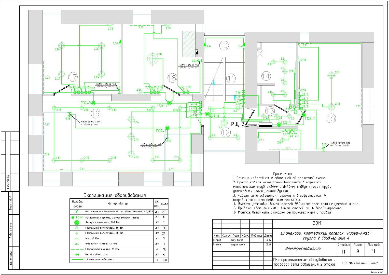 Исполнительная схема сетей электроснабжения и электроосвещения