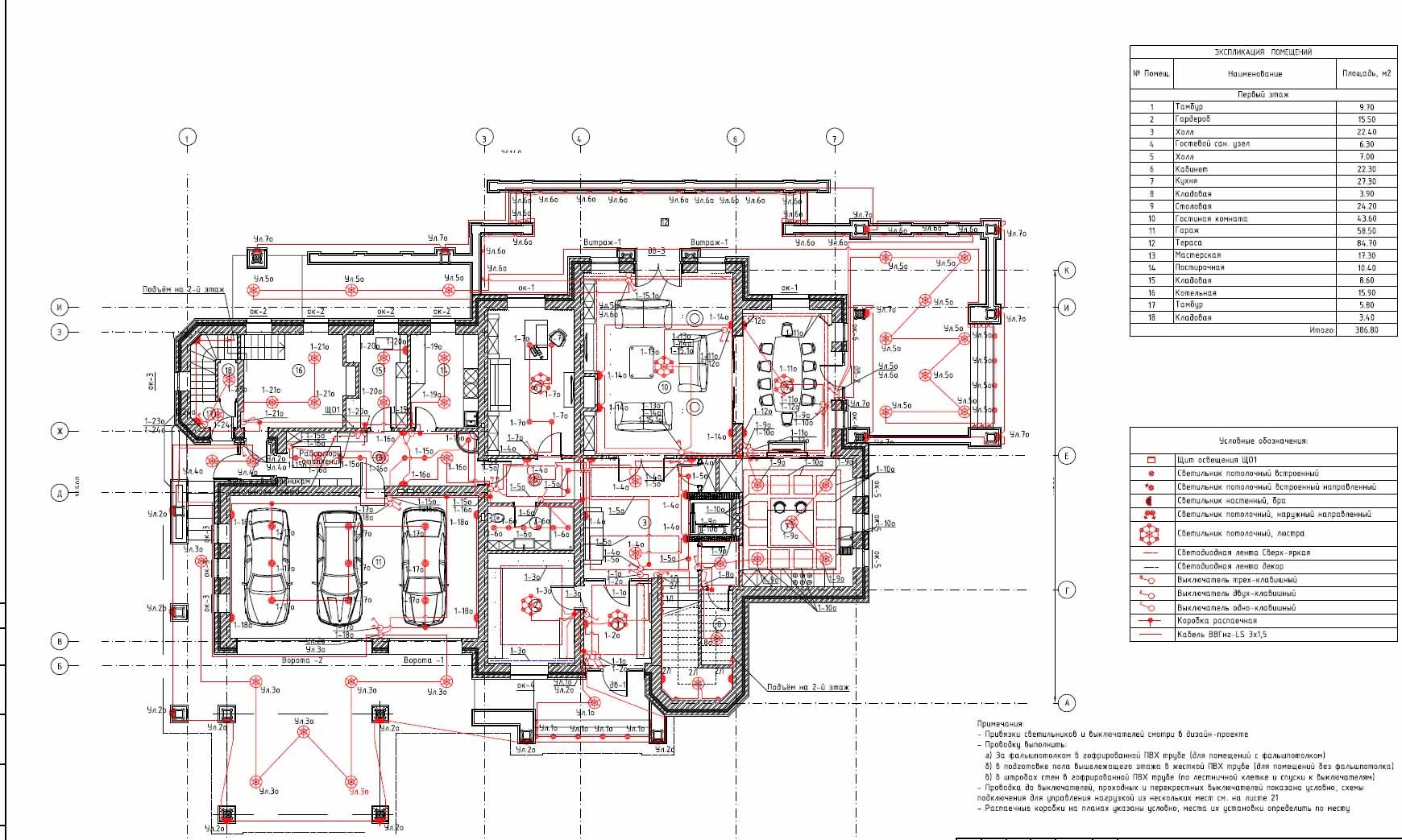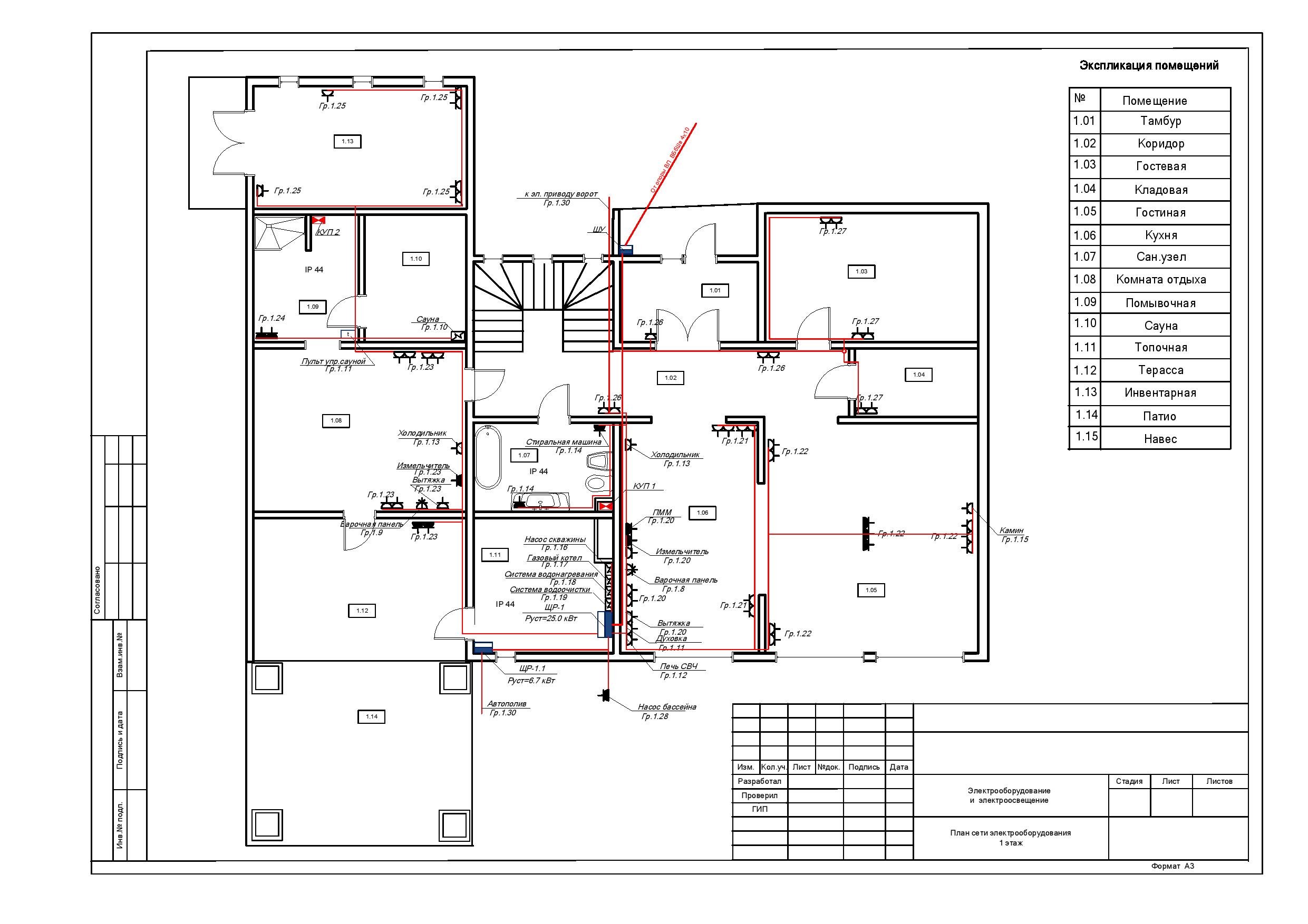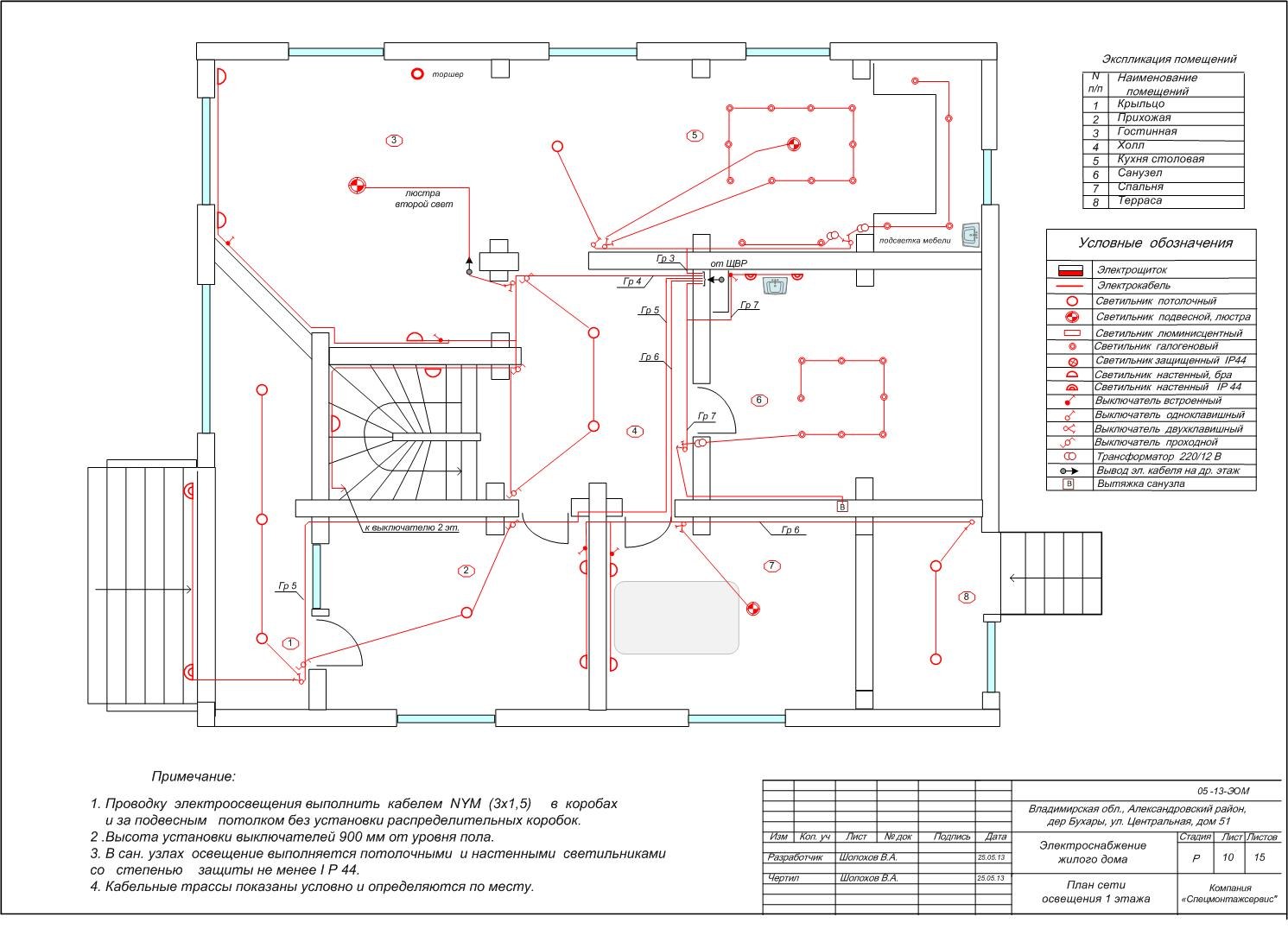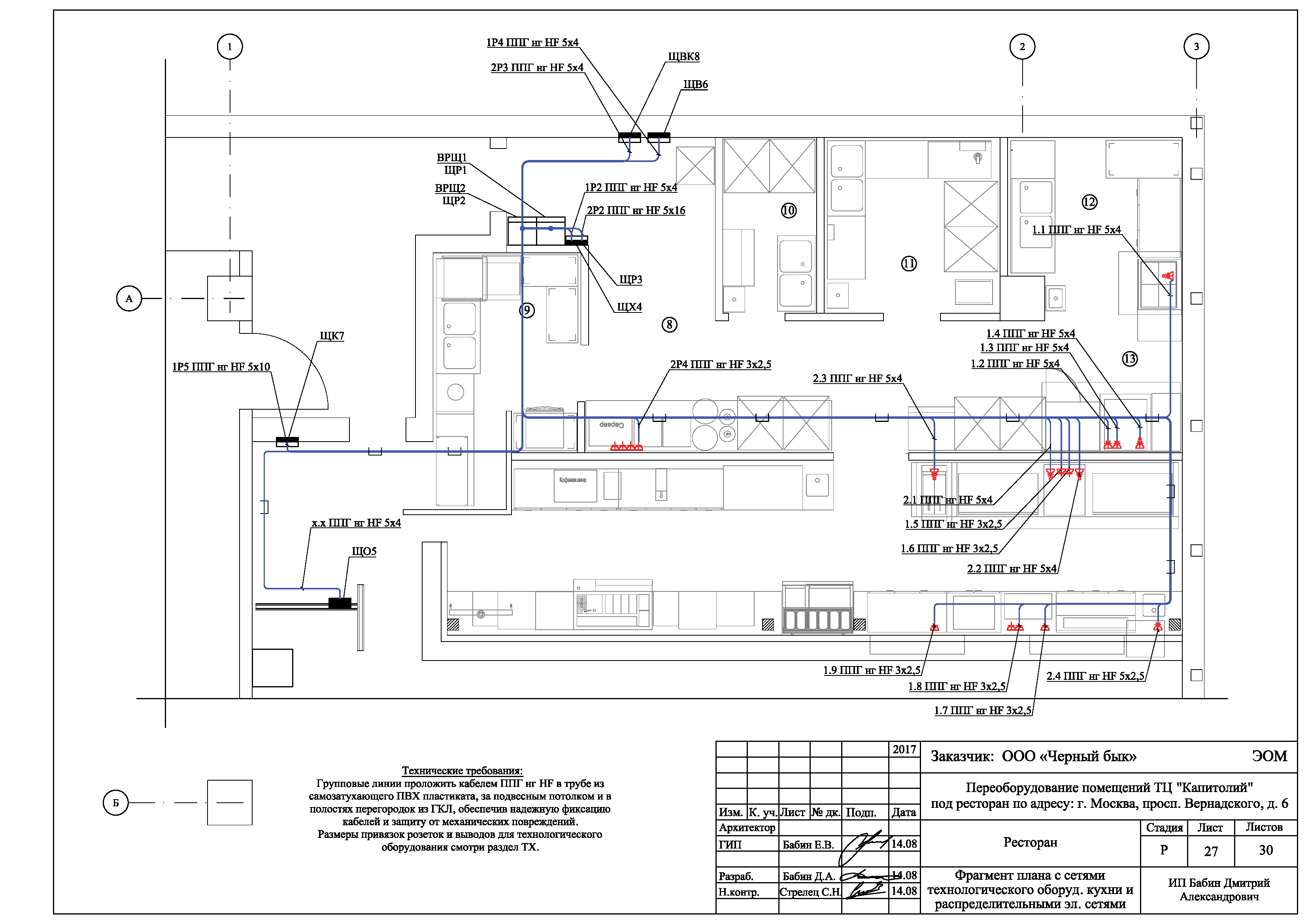 Исполнительная схема сетей электроснабжения и электроосвещения
