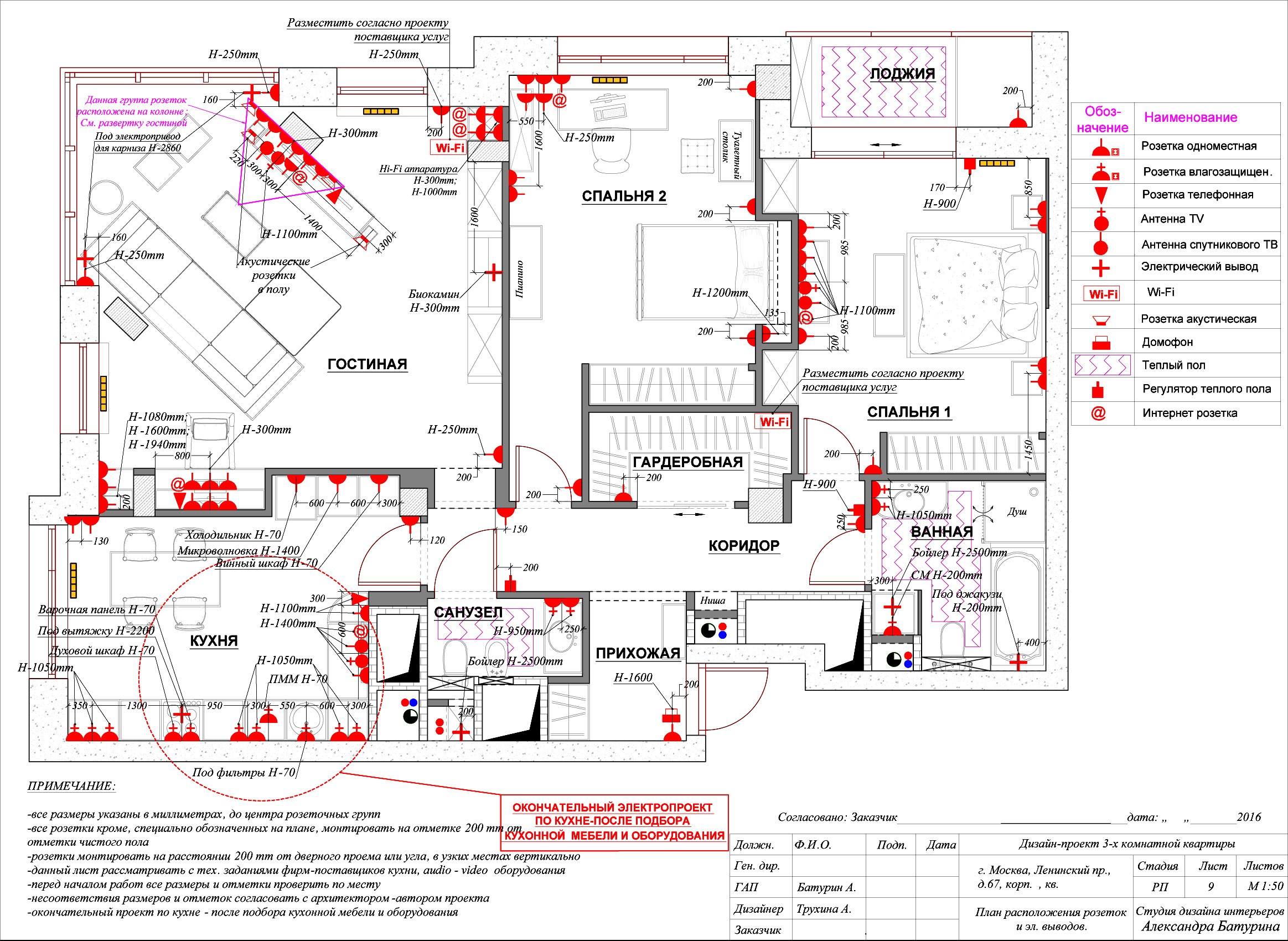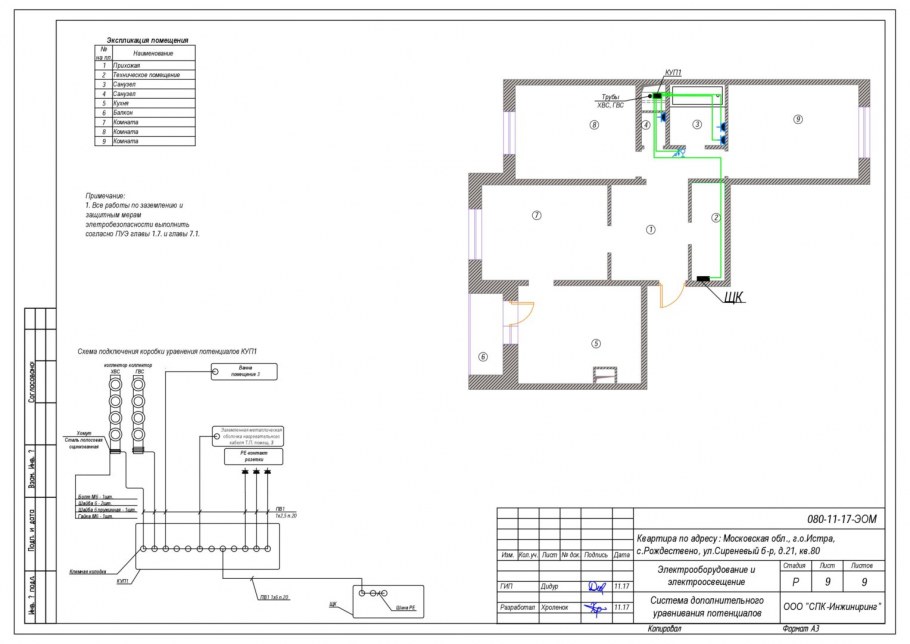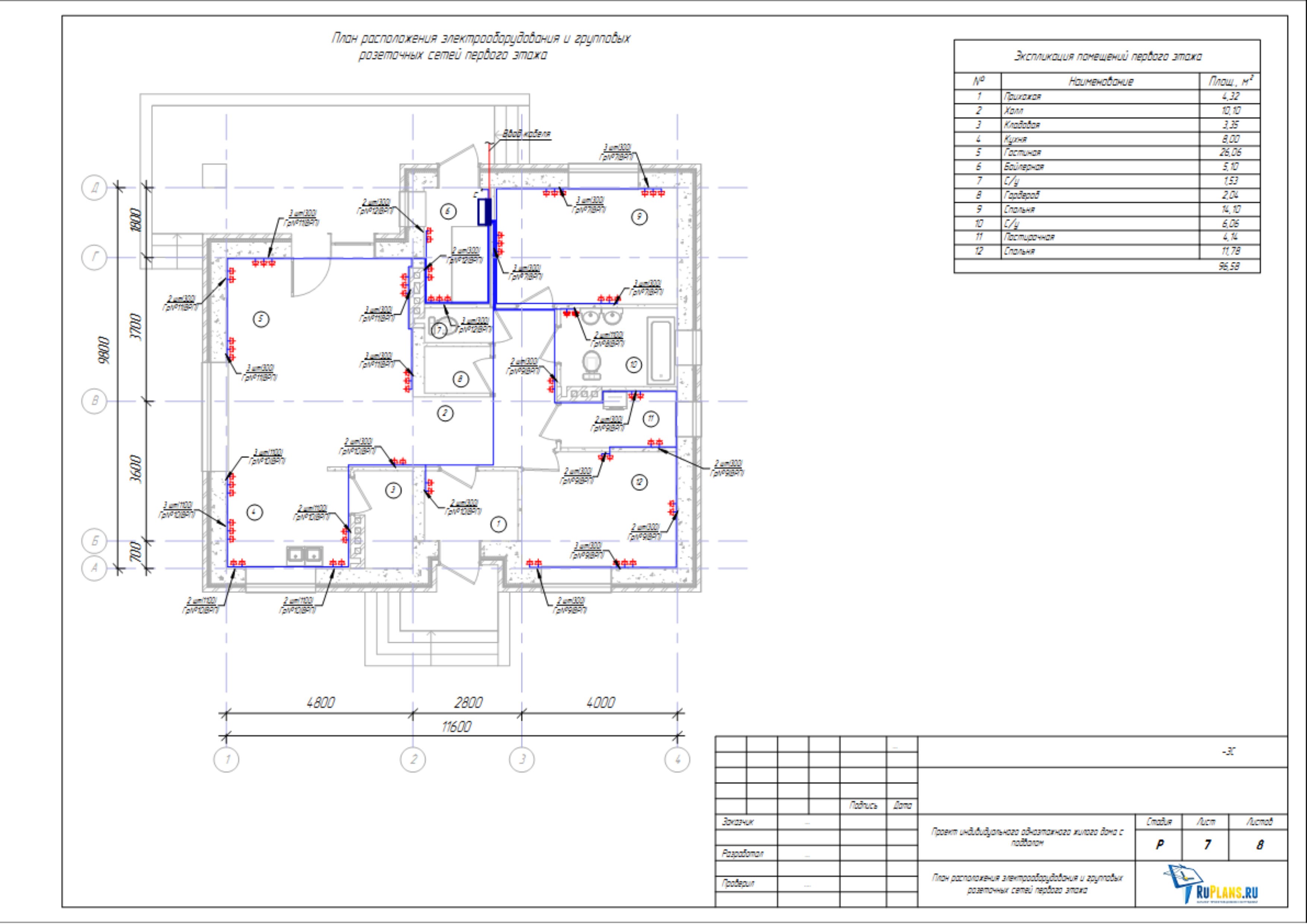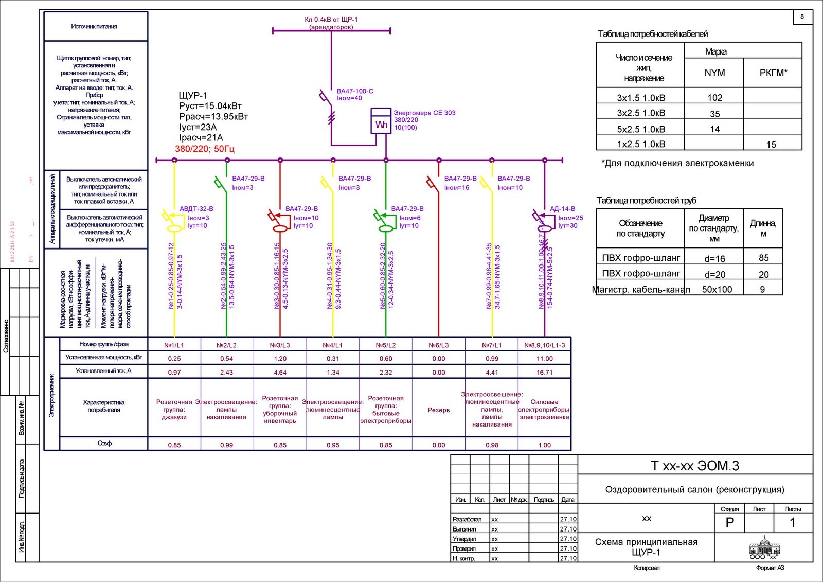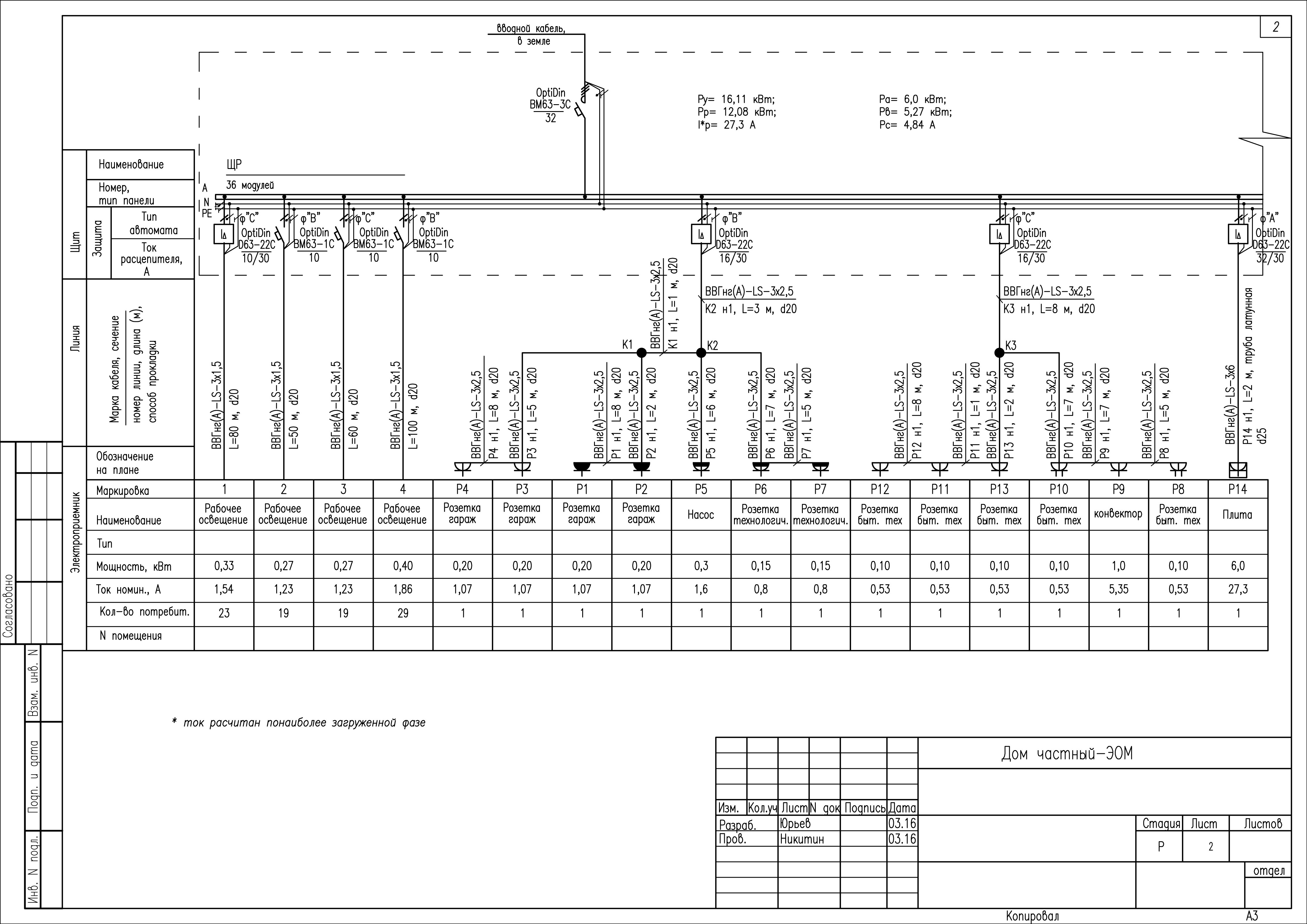 Исполнительная схема сетей электроснабжения и электроосвещения